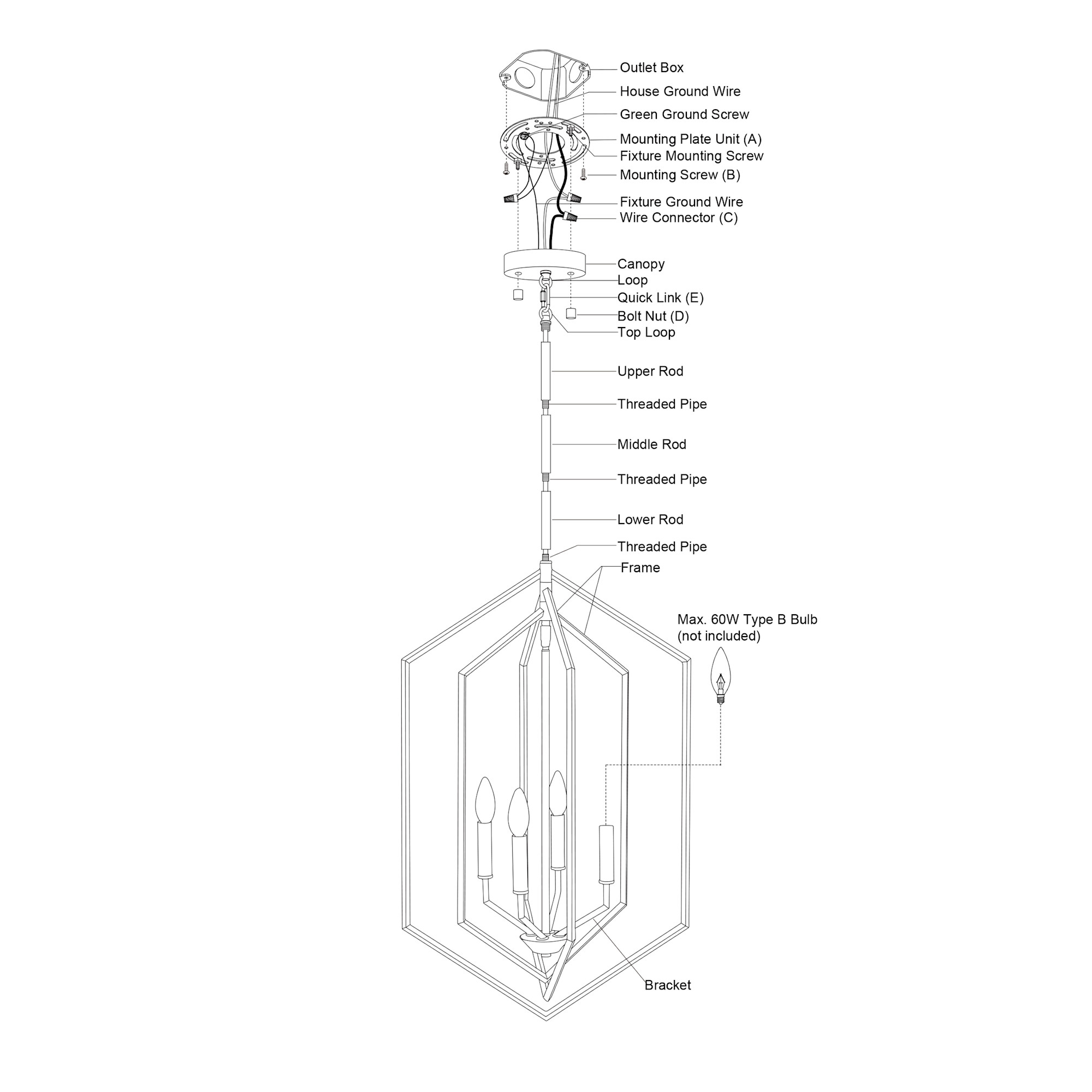 - Requires (4) 60 watt candelabra (E12) bulbs