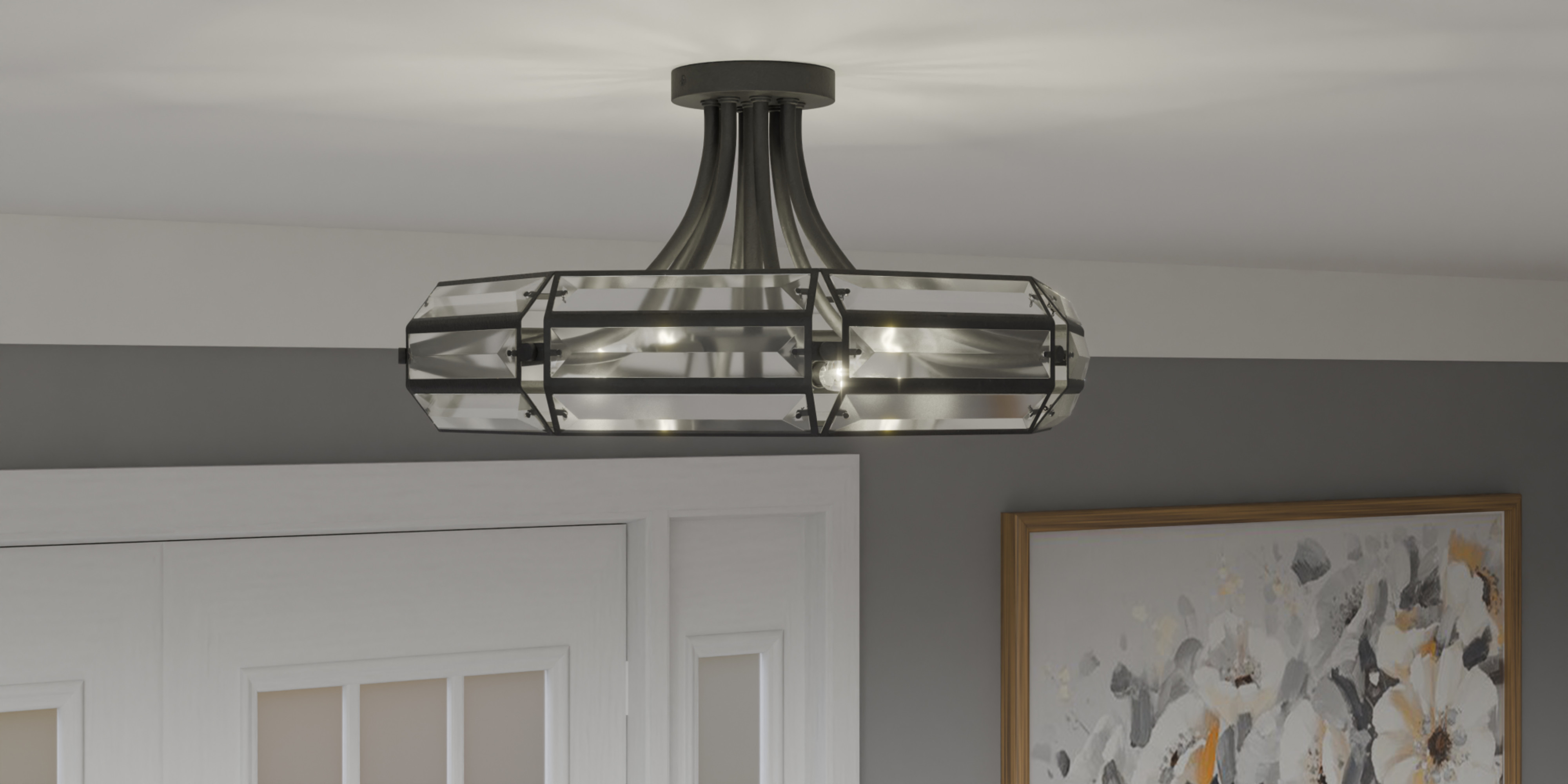 Item DescriptionWith a classic finish and clear crystal glass, the Padilla semi-flush mount light is all about sparkle. The crystal glass creates a dazzling illumination effect, adding instant luxury to any setting. Padilla ceiling lights are the perfect complement to glam, modern, or contemporary spaces.