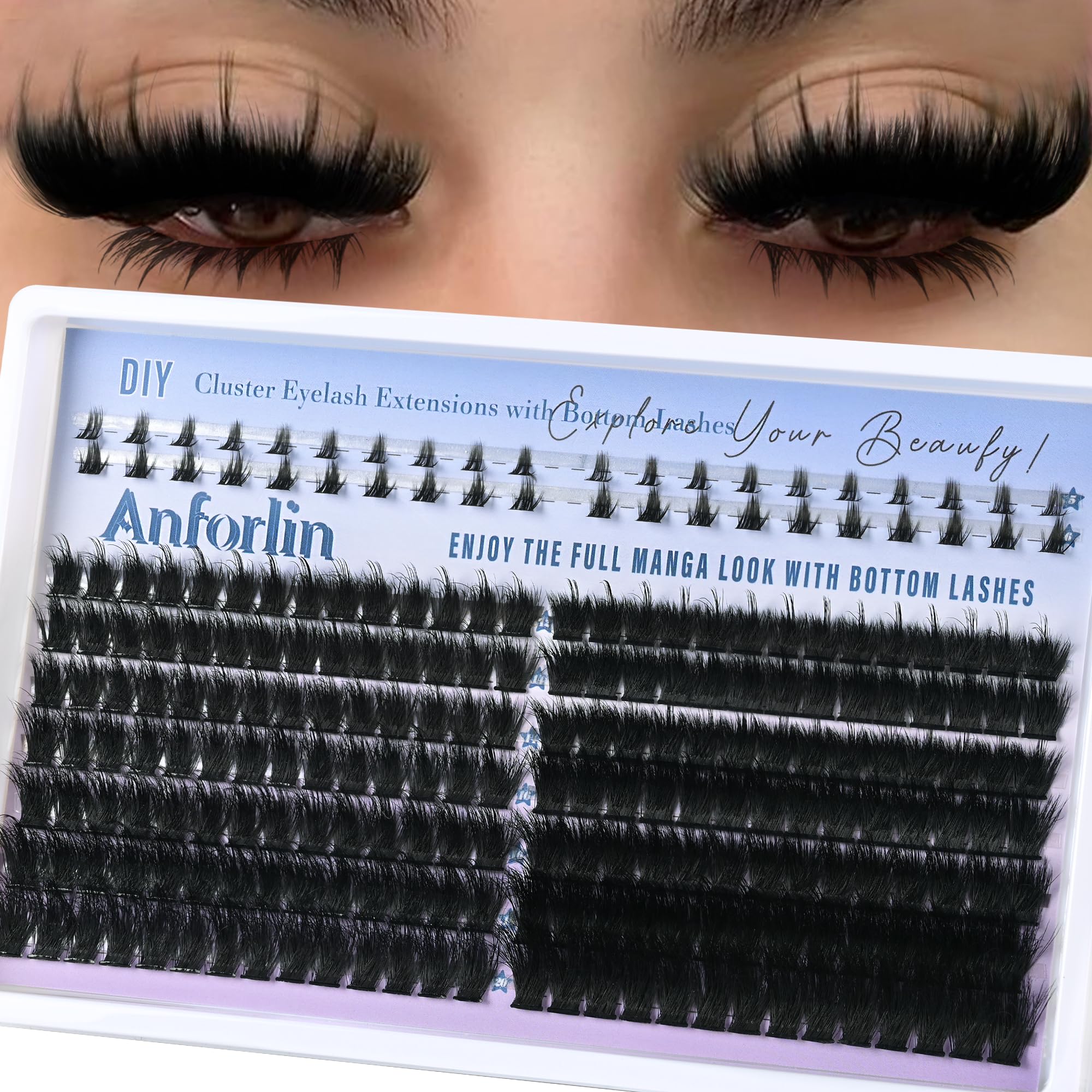 【Unlock Evil Baddie Lash Look with ANFORLIN】: Mix 150D+200D spiky volume lash clusters with charming bottom lashes. These clusters feature feathery, spiky tips for dramatic yet natural, eye-enlarging lash effects. Instantly create killer evil eyes with wispy clusters that add texture, lift, and bold lash spikes!