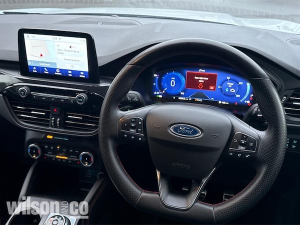 This 2023 Ford Kuga ST-Line X Edition is a superb example, having had only one owner since new. This striking vehicle boasts a 2.5 litre petrol hybrid engine, meeting the Euro 6 emission class. Inside, you'll find a host of premium features designed for comfort and convenience, including Electronic Automatic Temperature Control air conditioning, a heated steering wheel, and heated seats as part of the Winter Pack. The ST-Line X Edition also benefits from a power opening panoramic roof, flooding the cabin with light, and full LED headlamps for excellent visibility.The Kuga ST-Line X Edition offers an impressive blend of efficiency and performance. With a fuel economy of 51 miles per gallon and low CO2 emissions, it represents a more economical choice compared to many similar vehicles. Its acceleration from 0 to 62 miles per hour in just 9.1 seconds demonstrates its capable performance. Furthermore, its placement in a low insurance group makes it an even more appealing and cost effective option for many drivers.
