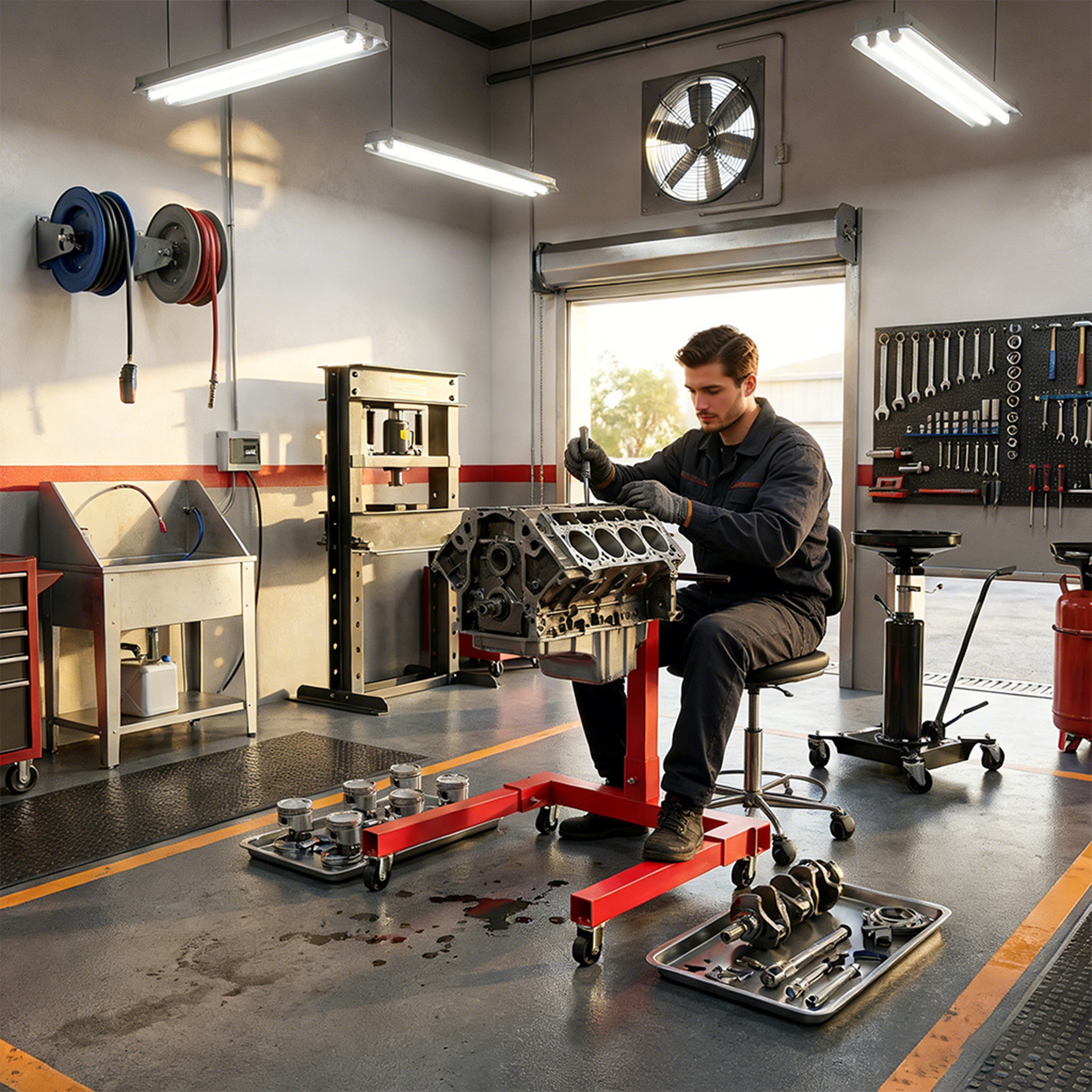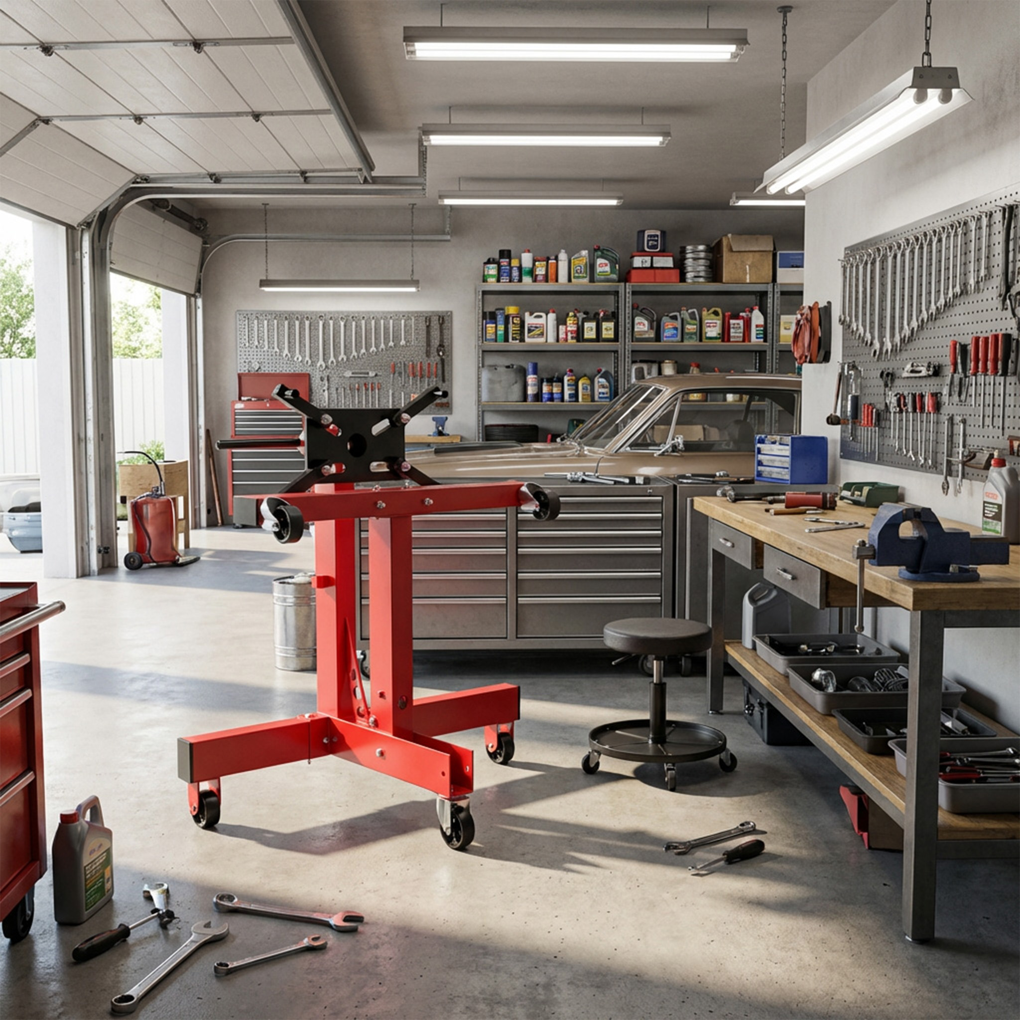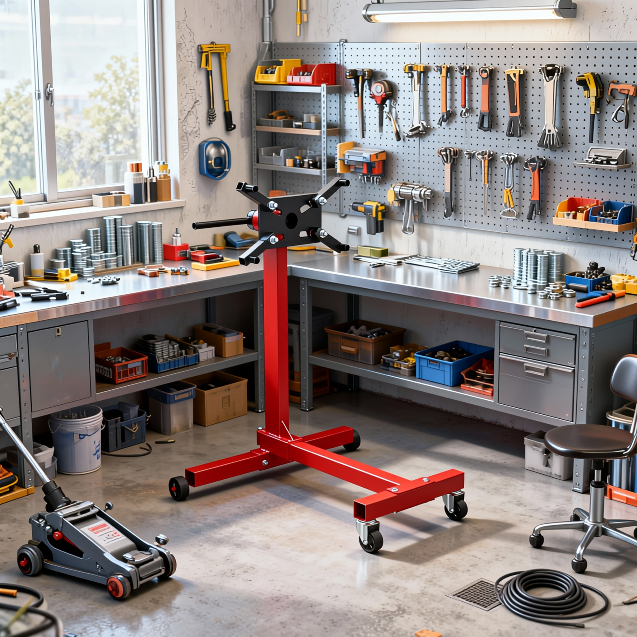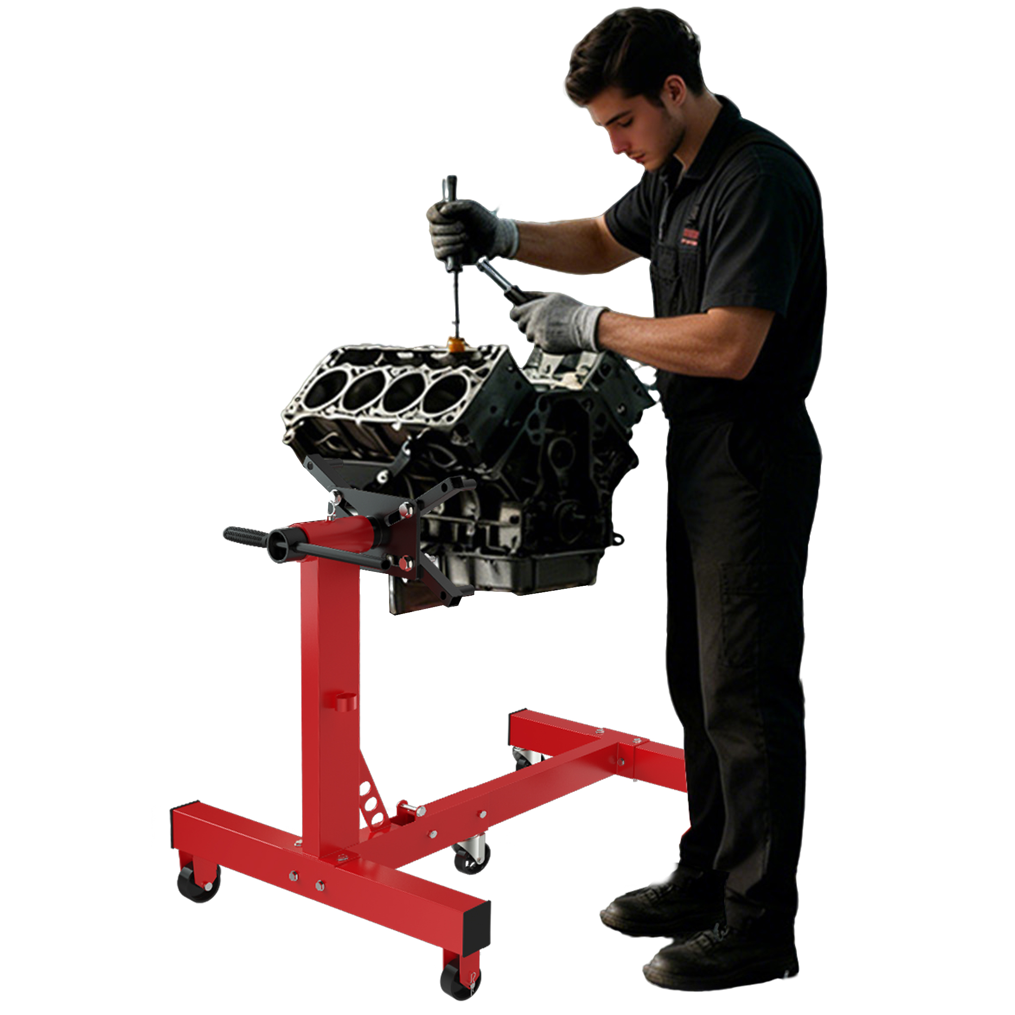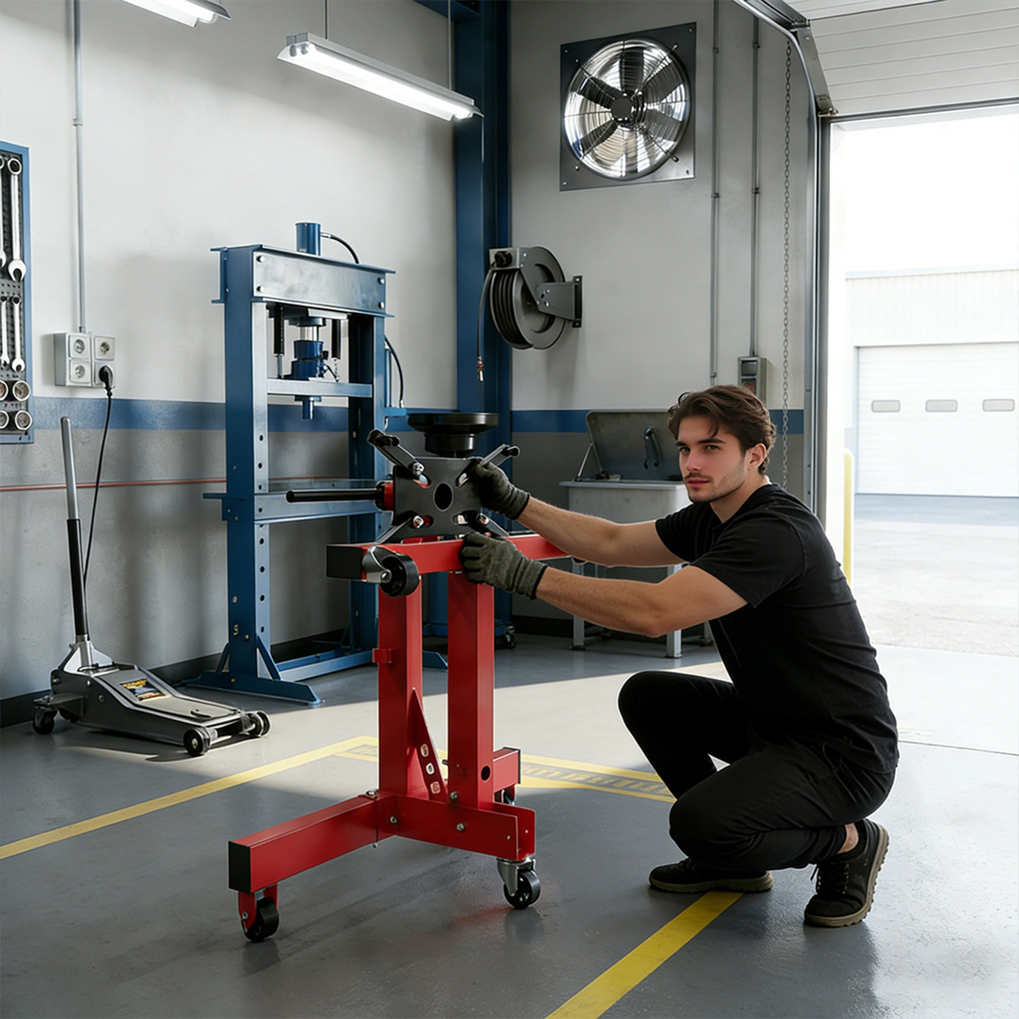 Unser Motorständer trägt Motoren und Getriebe bis 450 kg, 570 kg oder 680 kg; die Aufnahmeplatte ist 360° drehbar und in 60°-Schritten arretierbar, sodass jeder Bereich des Motors oder Getriebes mühelos erreichbar ist, und die Montagearme sind verstellbar und mit robusten 35 mm Schrauben ausgestattet, die eine sichere Befestigung des Motorblocks gewährleisten, hergestellt aus lackiertem Stahl, überzeugt er durch hohe Belastbarkeit und Langlebigkeit und ist ideal für Werkstatt, Garage oder DIY-Projekte.