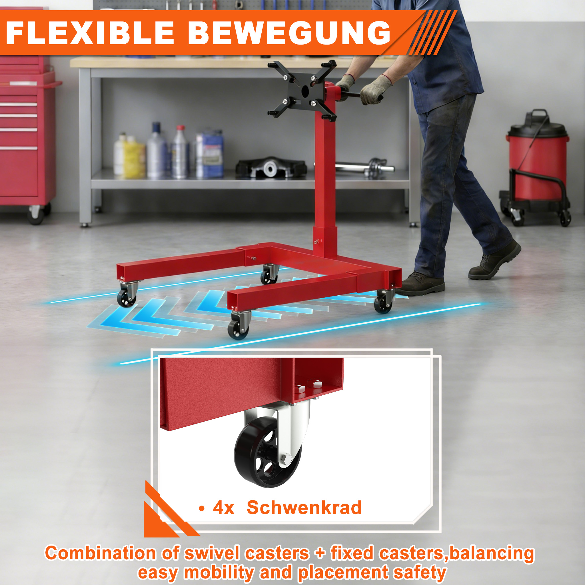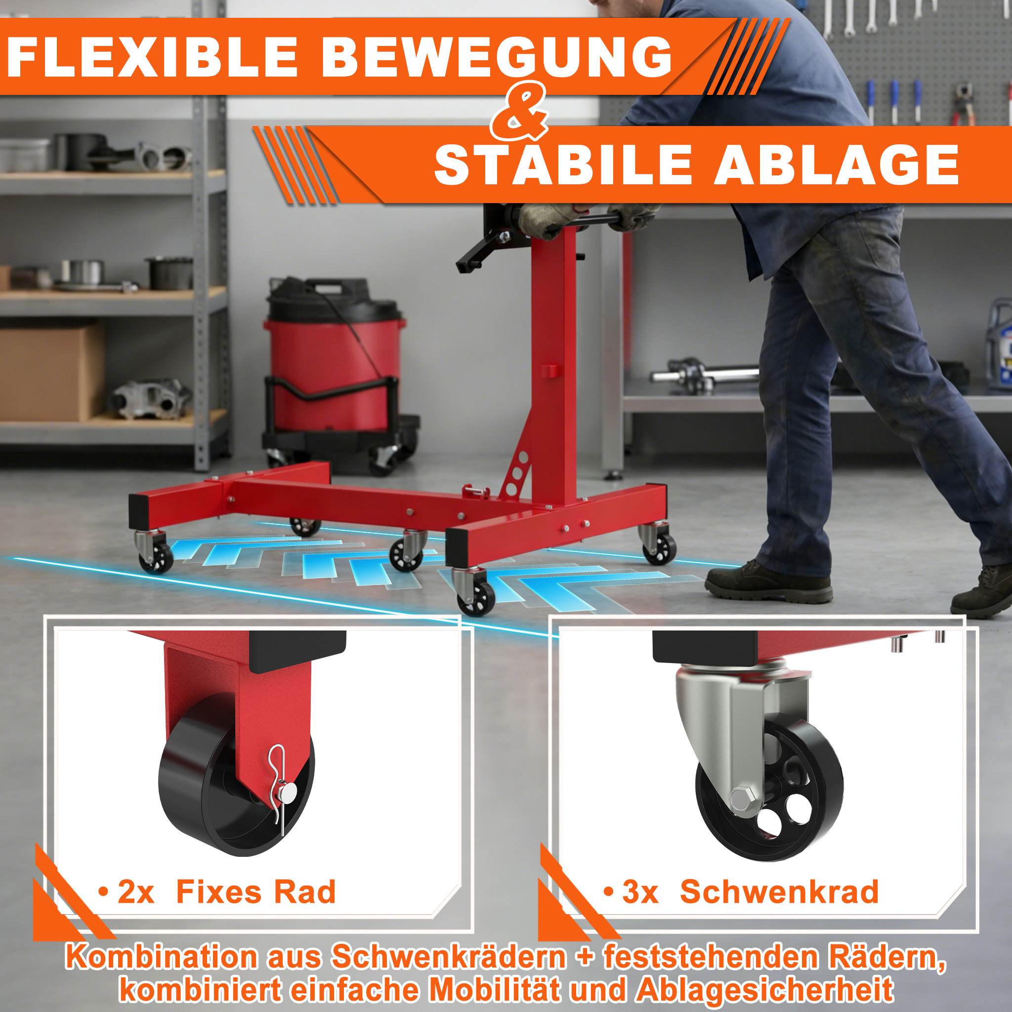 🛠️【Robust & Langlebig】Der Motorständer wird vollständig aus hochwertigem lackiertem Stahl hergestellt, der eine ausgezeichnete Korrosionsbeständigkeit, hohe Belastbarkeit und lange Lebensdauer aufweist. Die lackierte Oberfläche schützt vor Staub, Feuchtigkeit und Abnutzung, sodass der Ständer auch in rauhen Umgebungen wie Werkstätten oder Garagen lange nutzbar bleibt. Er ist perfekt geeignet für tägliche Nutzung in professionellen Werkstätten, für Hobby-Projekte in der Garage oder für DIY-Arbeiten, bei denen Zuverlässigkeit und Langlebigkeit unverzichtbar sind.