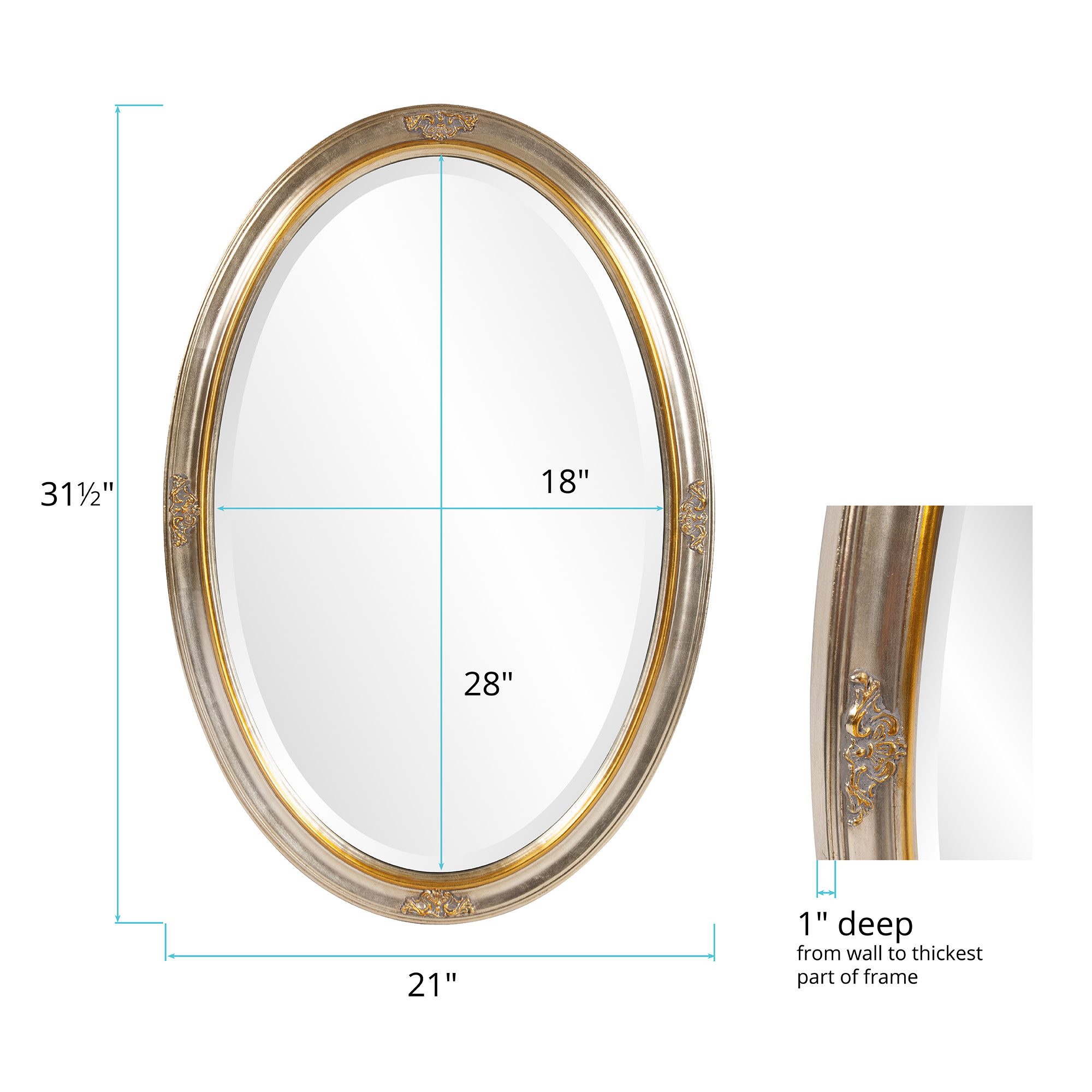 - This oval mirror features a cameo-esque frame with breathtaking grooves and lines