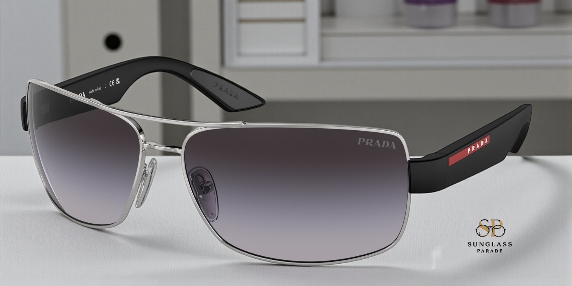 PRADA LINEA ROSSA PS 50ZS 1BC09U Silver Gradient Grey 65 mm Men's Sunglasses