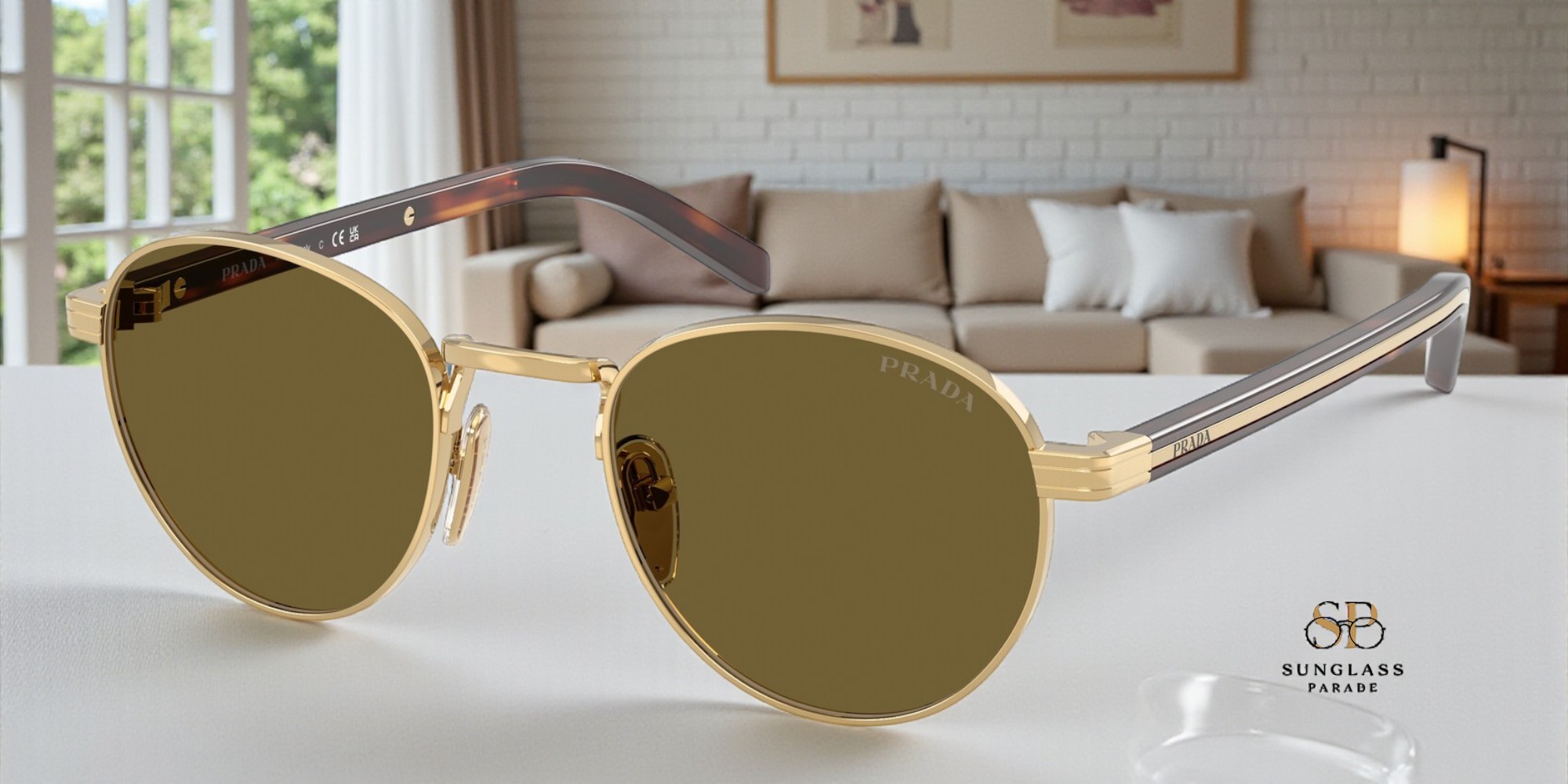 PRADA PR B52S 5AK09Z Gold Dark Brown 49 mm Women's Sunglasses