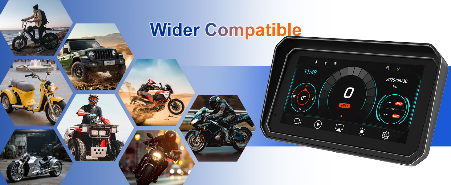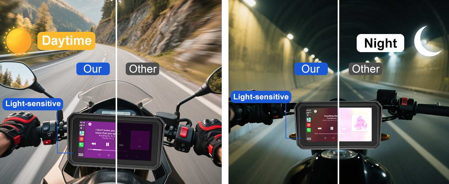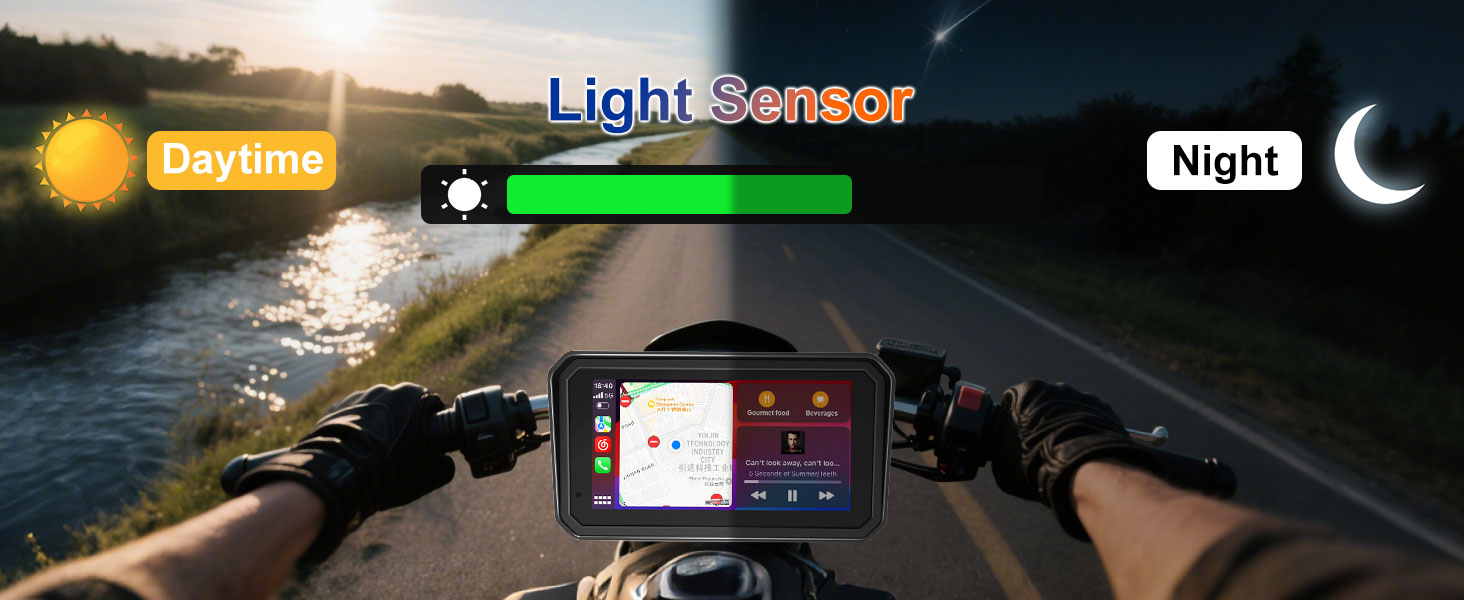 【QLED Dash with Auto-Light Sensing Anti-Glare & Vibrant View】Upgraded QLED dash with richer colors and 95% anti-glare to reduce reflections. Supports carplay motorcycle, carplay moto, carplay para moto, and apple car play for motorcycle, fitting modern motorcycle accessories needs. Auto light sensing adjusts brightness day and night, making this a practical motorcycle carplay screen pantalla para moto.