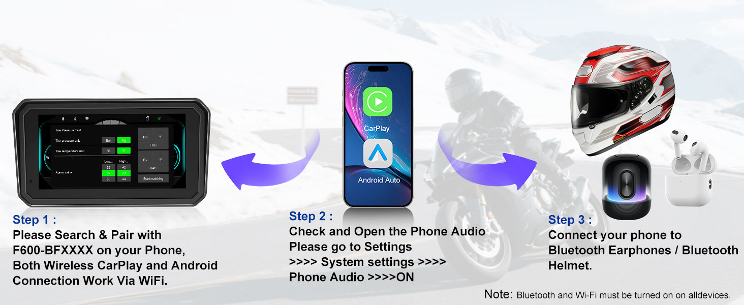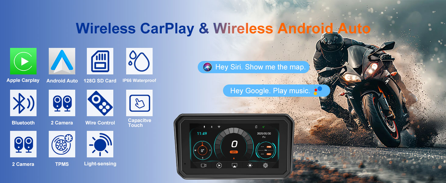 【MT600 Pro Motorcycle CarPlay】Enjoy an upgraded touchscreen with wireless CarPlay, Wireless Android Auto, and Bluetooth motorcycle music. This carplay motorcycle works as a premium motorcycle carplay screen and apple car play for motorcycle solution, ideal motorcycle accessories for men and everyday motorcycle accessories. Discover routes and use Siri or Google Assistant for safe voice control.