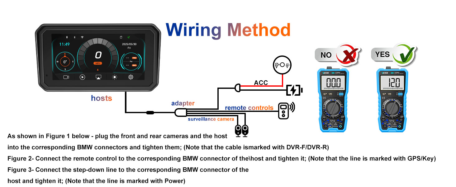 【Motorcycle DVR with Dual 1080P Cameras】Our motorcycle android auto captures clear footage with front and rear 1080P cameras for full coverage, acting as a reliable motorcycle video recorder. Dual-channel recording and included 128GB SD card offer ample storage. Auto light sensing adjusts brightness for visibility, perfect for motorcycle carplay with camera setups.