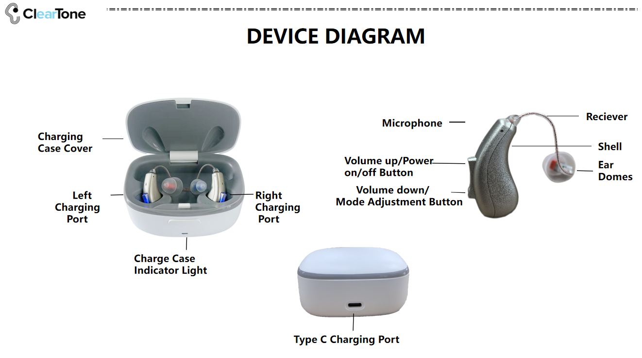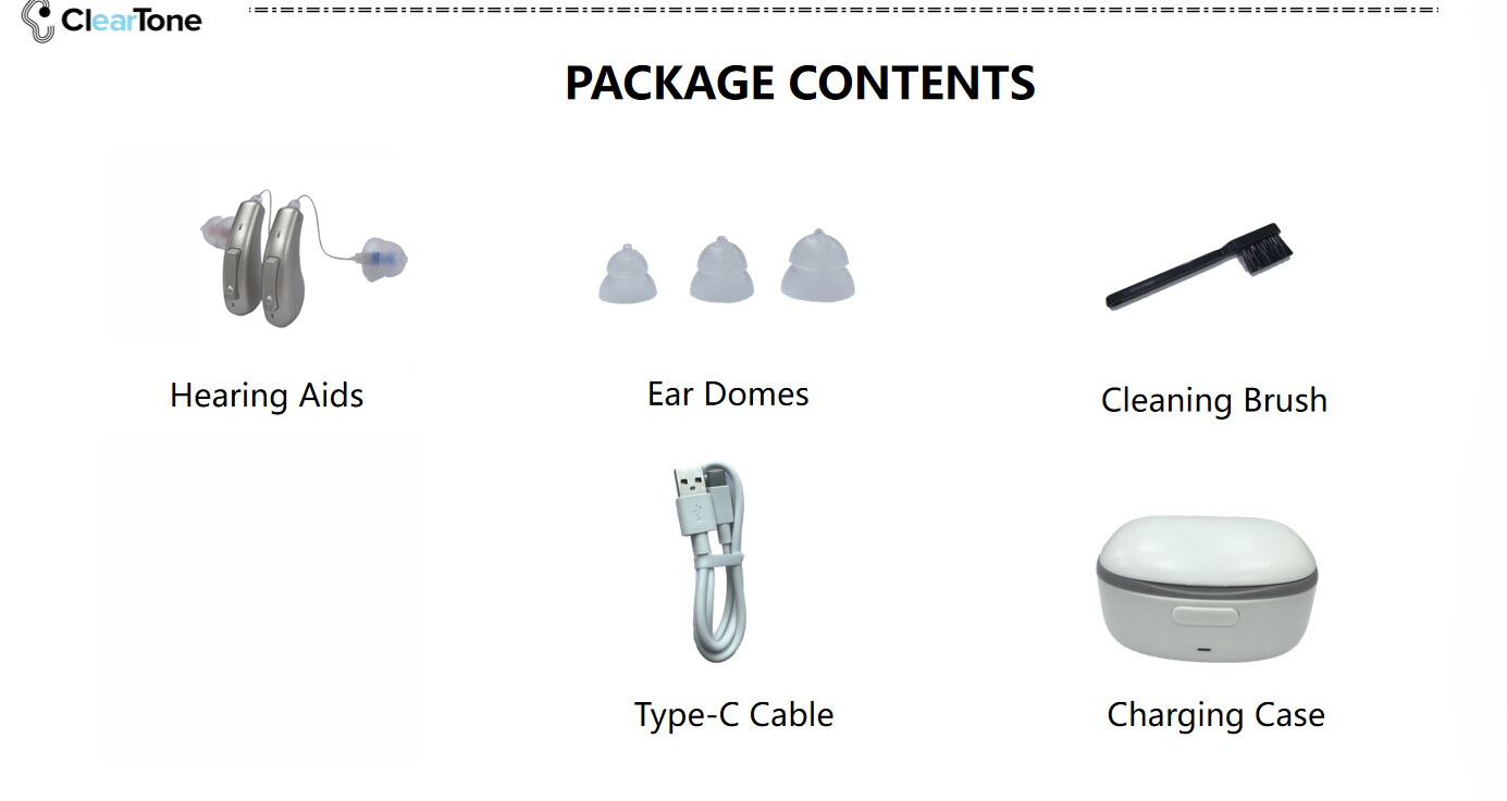 Fast Recharging & Long Working Hours - ClearTone hearing aids can be fully charged within 2.5 hours (Both the devices and charging case), which will power up to 30 hours for hearing aids working, or 12 hours for Bluetooth streaming. What's more, the beautiful recycle charging case can provide your hearing aids 1 week stand by power.