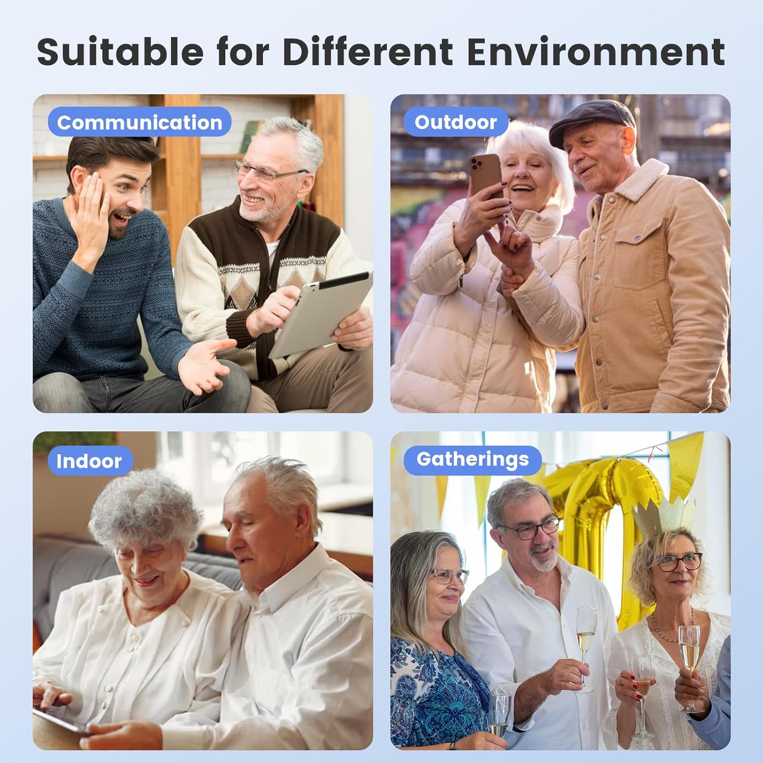 Multi-Scenario Application - ClearTone hearing aids comes with multiple preset sound modes for various everyday environments, such as quiet conversations, noisy restaurants, or outdoor settings.Easily switch between modes or adjust the tone and loudness for the best experience, all through intuitive controls on the device or app.