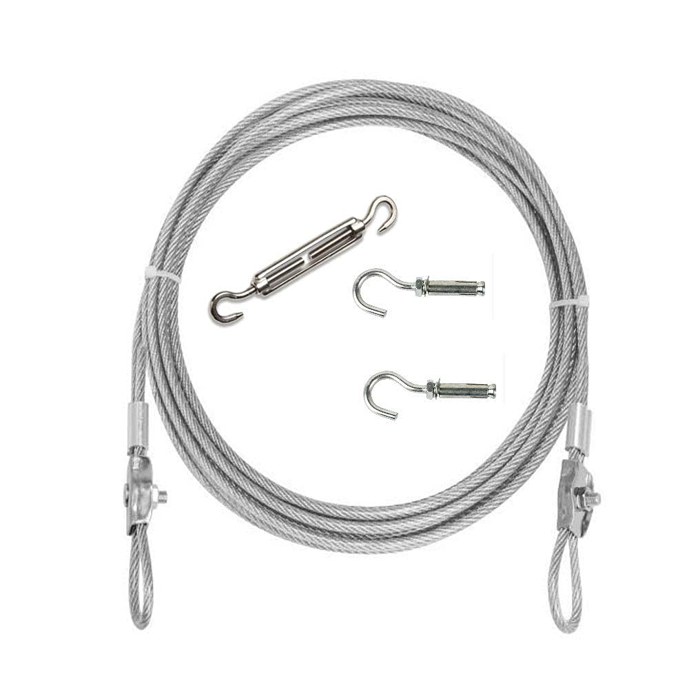 Specifications:Wire rope cable:Color: silverConstruction: 7x7Material: 304 stainless steelDiameter: 3mm; Length: 32 feetPackage Included:2X Nuts2XExpansion Hook1X M6Turnbuckle1X M3Stainless Clotheslines2x3mm Double aluminum sleeve1X Installation instructions