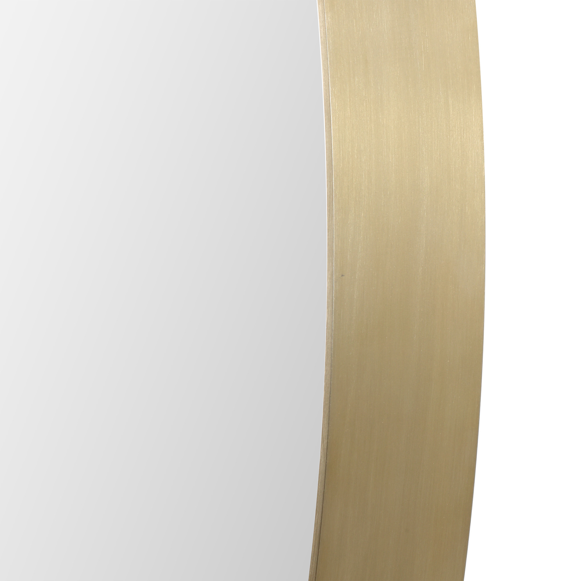 Item DescriptionThis upscale vanity mirror features a thick steel band displaying nice depth with a plated brass finish. May be hung horizontal or vertical.
