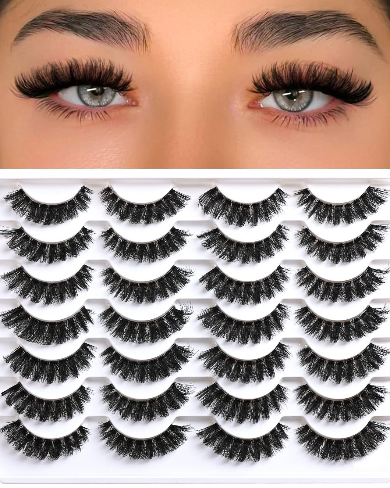 Lashes False Eyelashes Natural Wispy Fake Lash Strips 80D Strip Lash Clusters Cat Eye Volume Mink Eyelash Pack Fluffy Eye Lashes Natural Look Short Cateye Full Pestañas Sets by FenBair