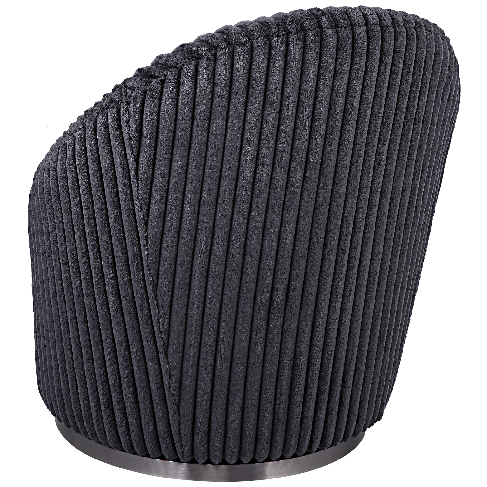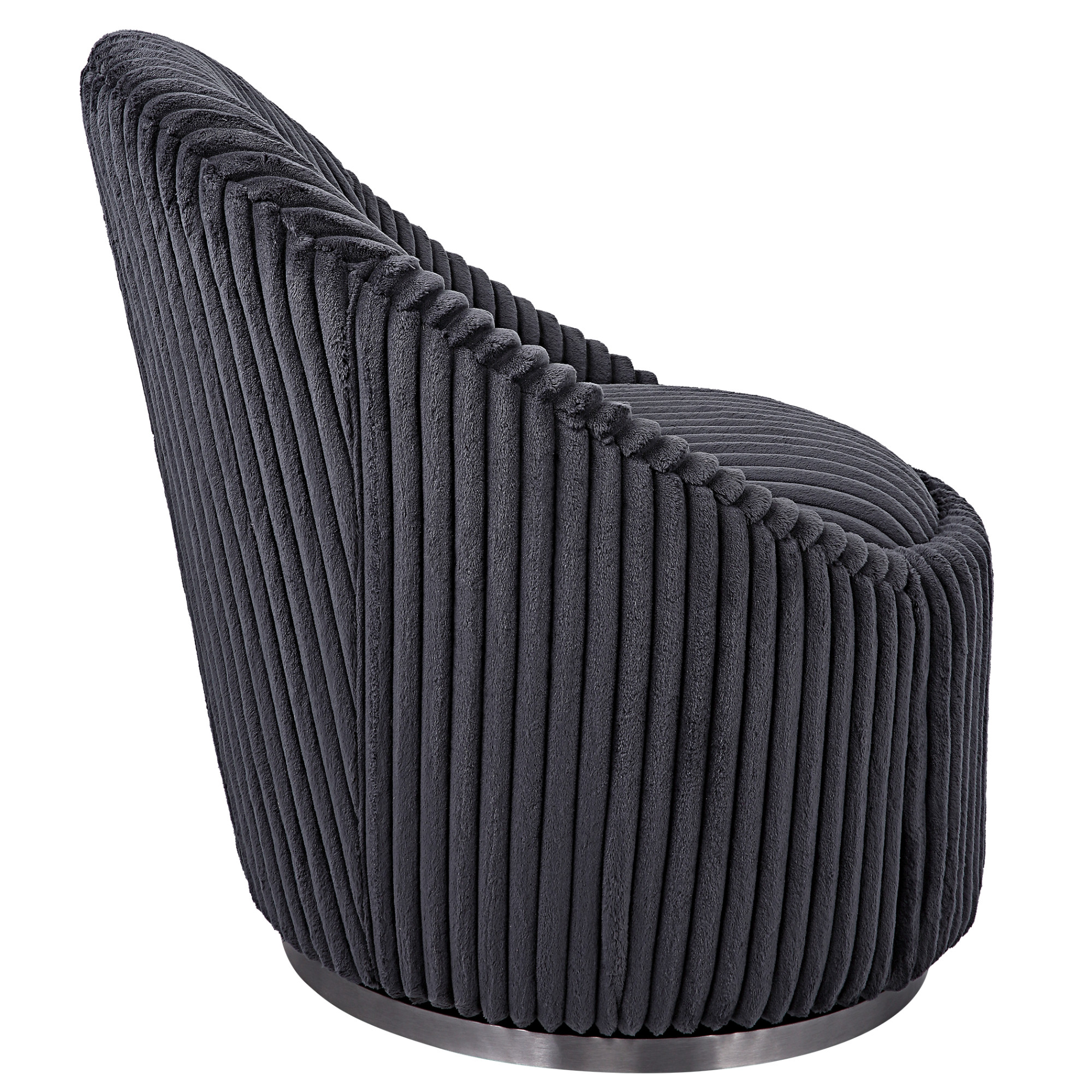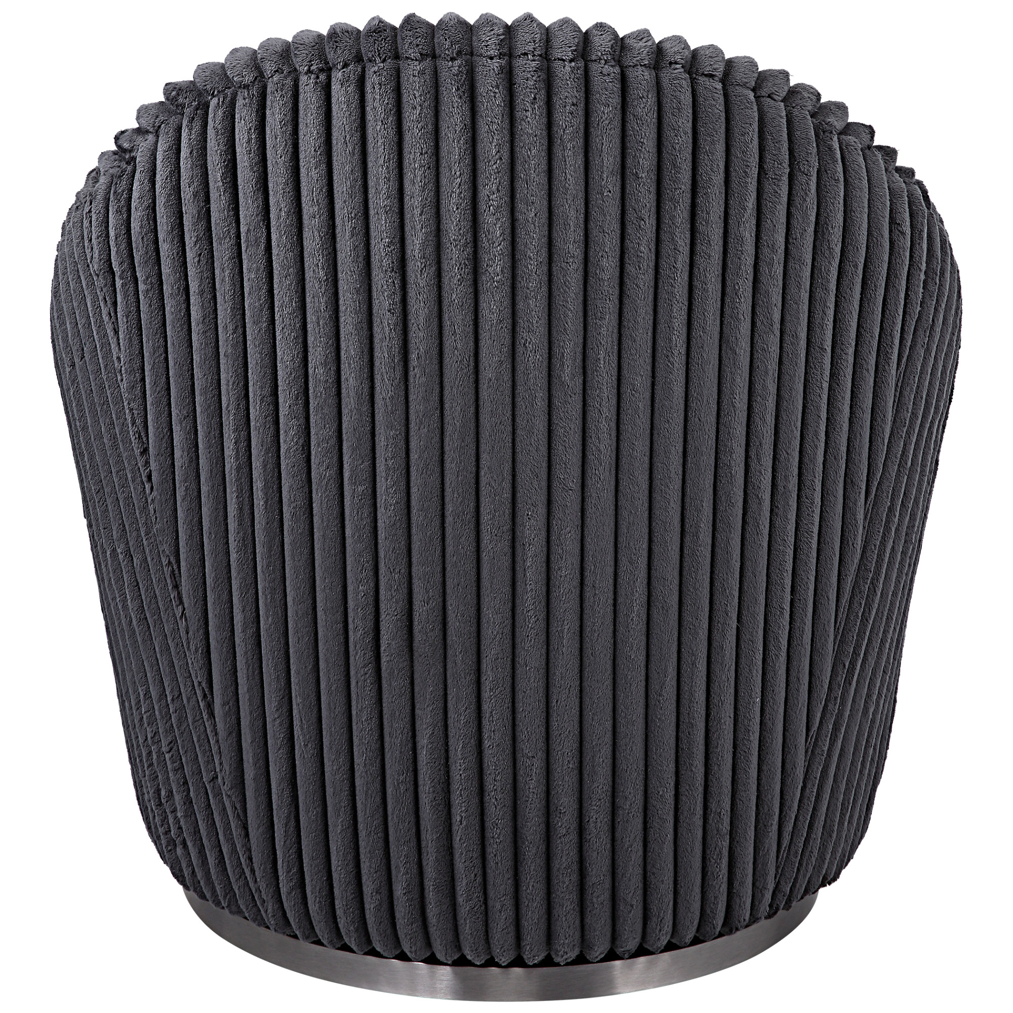 - Upholstered in a luxurious fluted gunmetal chenille fabric