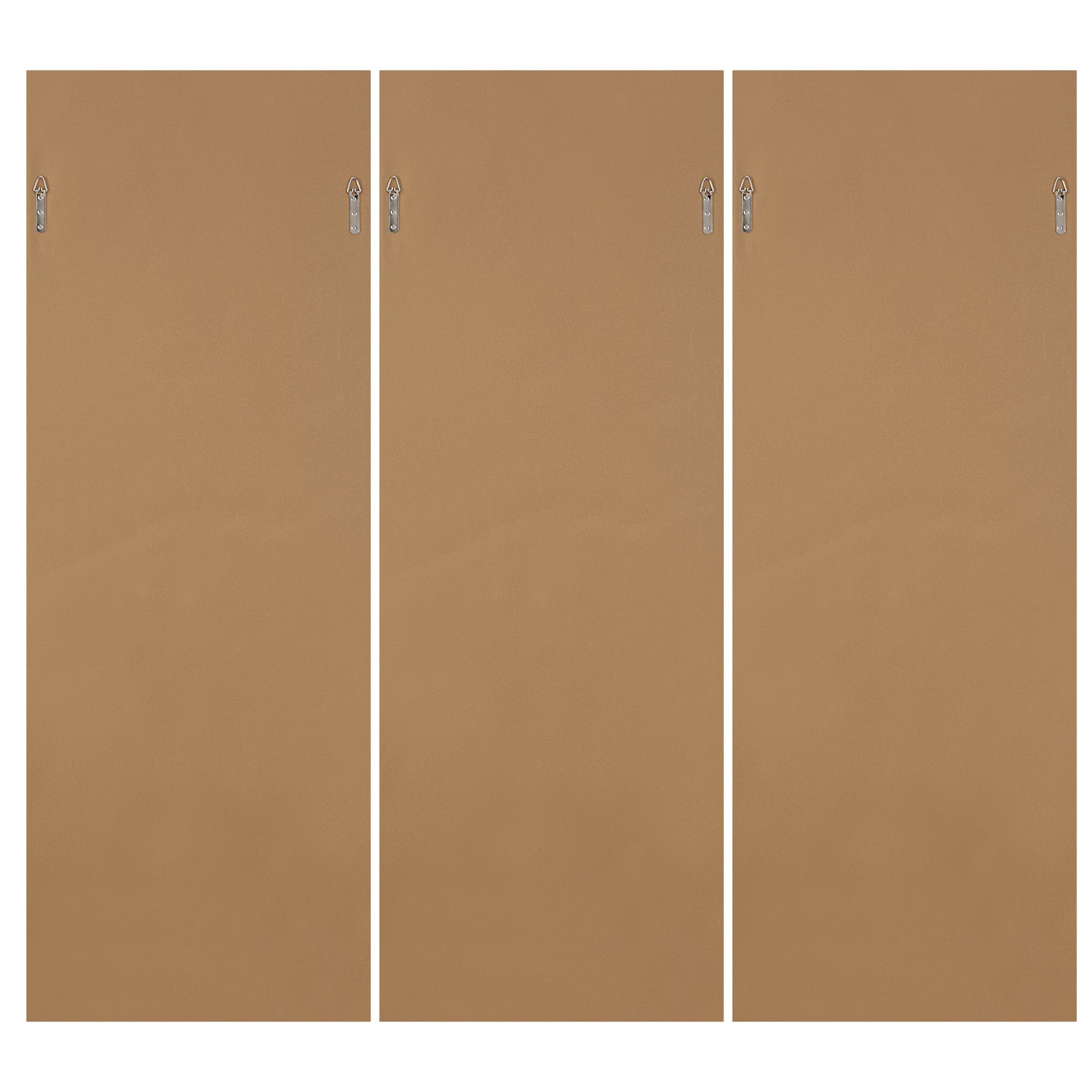 - Pine wood frame in espresso stain, white linen liner, protective spray over prints, abstract, triptych, amber, mint, black, white, and gray