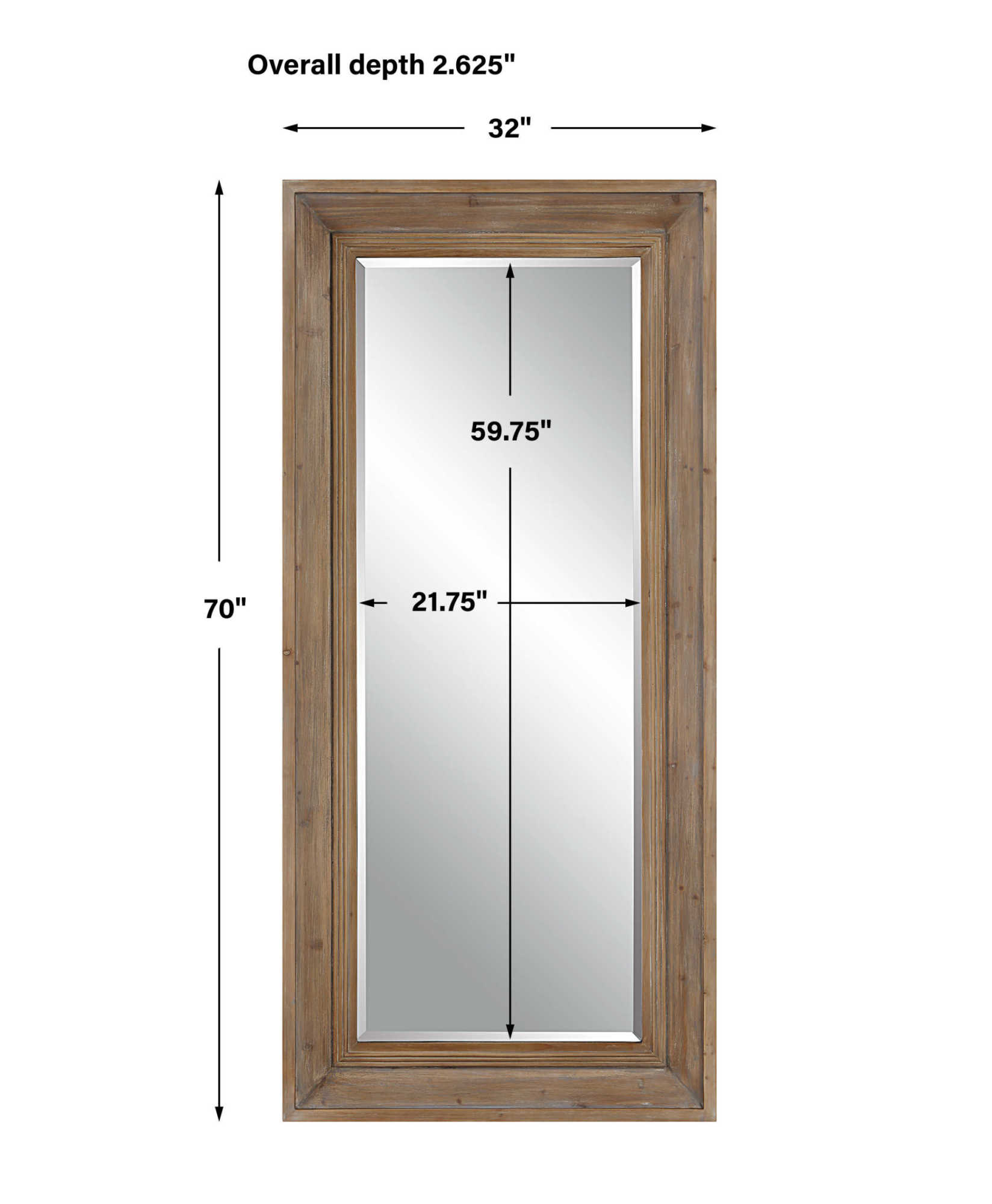 Item DescriptionThe Missoula mirror, natural is crafted from solid fir wood in a naturally distressed finish with a subtle light gray wash. Mirror has a generous 1 1/4" bevel. May be hung horizontal or vertical.