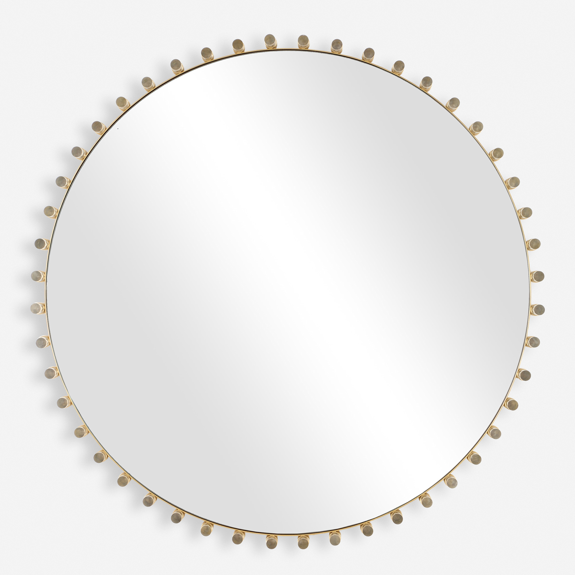 Item DescriptionThe avelyne round mirror blends elegance with modern design, featuring a plated antique outer frame that's surrounded by thick acrylic rods.
