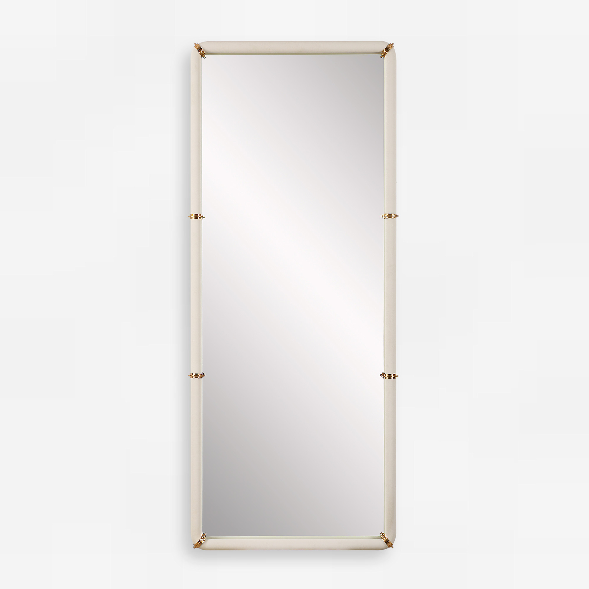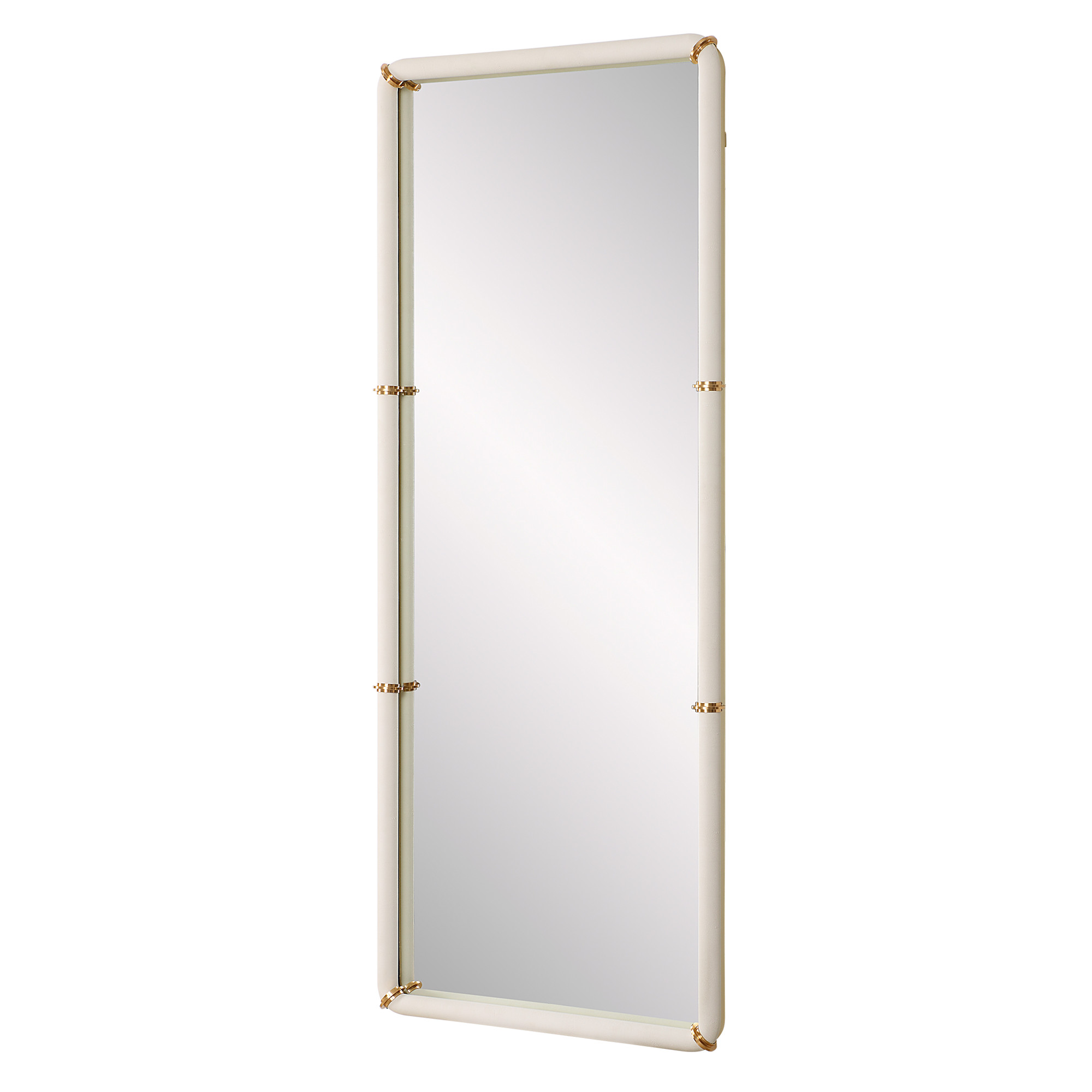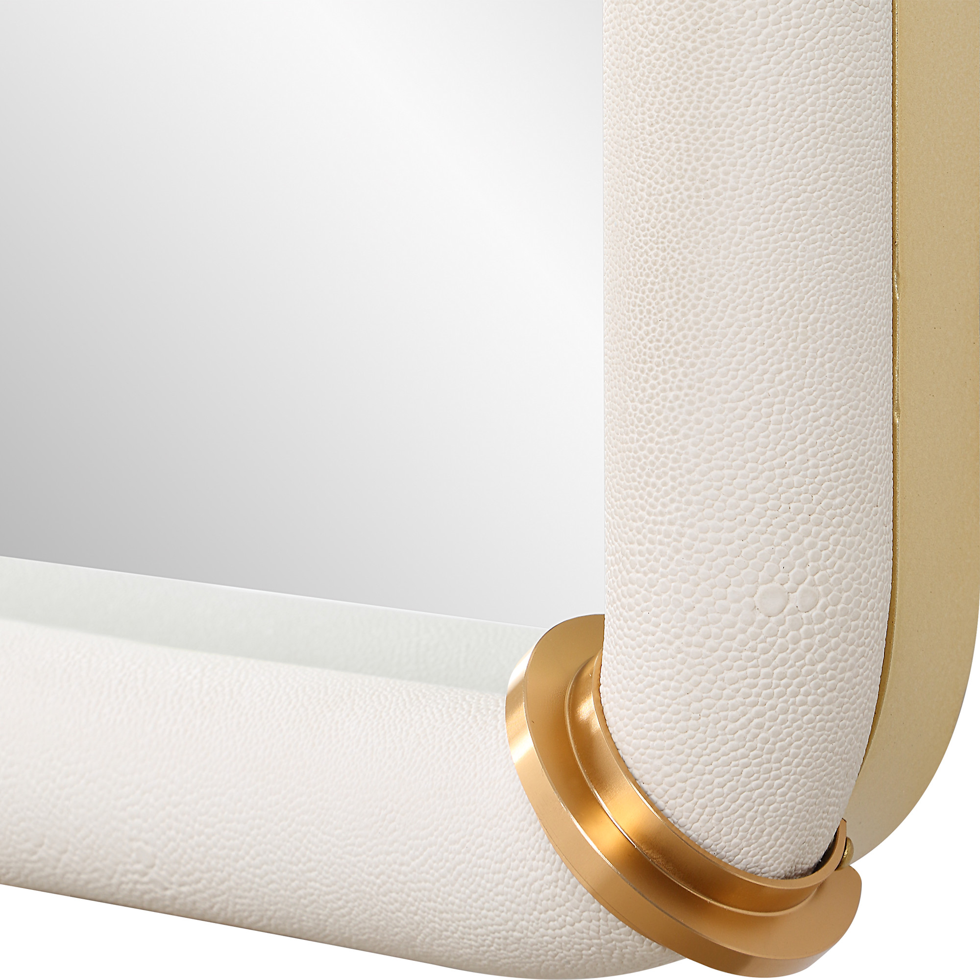 Item DescriptionThe cyprus dressing mirror showcases a faux shagreen leather wrap featuring plated steel bands that help elevate this sophisticated design. May be hung horizontal or vertical.