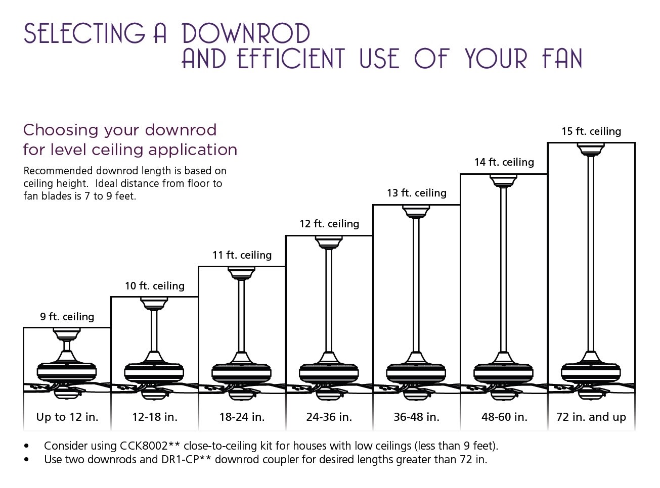- For ceiling heights greater than 15 feet, you'll need to purchase the DR1-CP downrod coupler to join two downrods together.