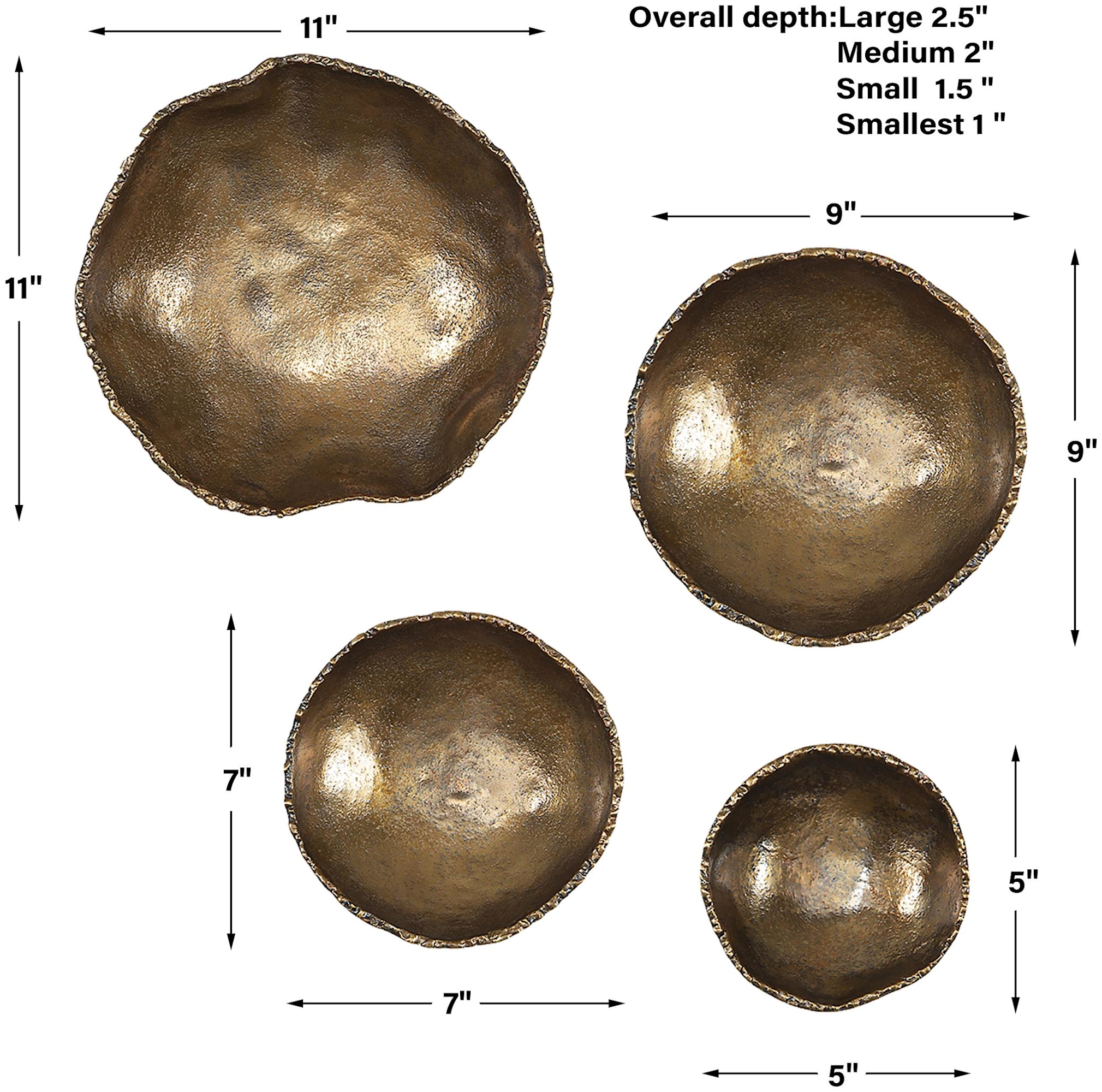 - Smallest bowl: 5"H x 5"W x 1"D