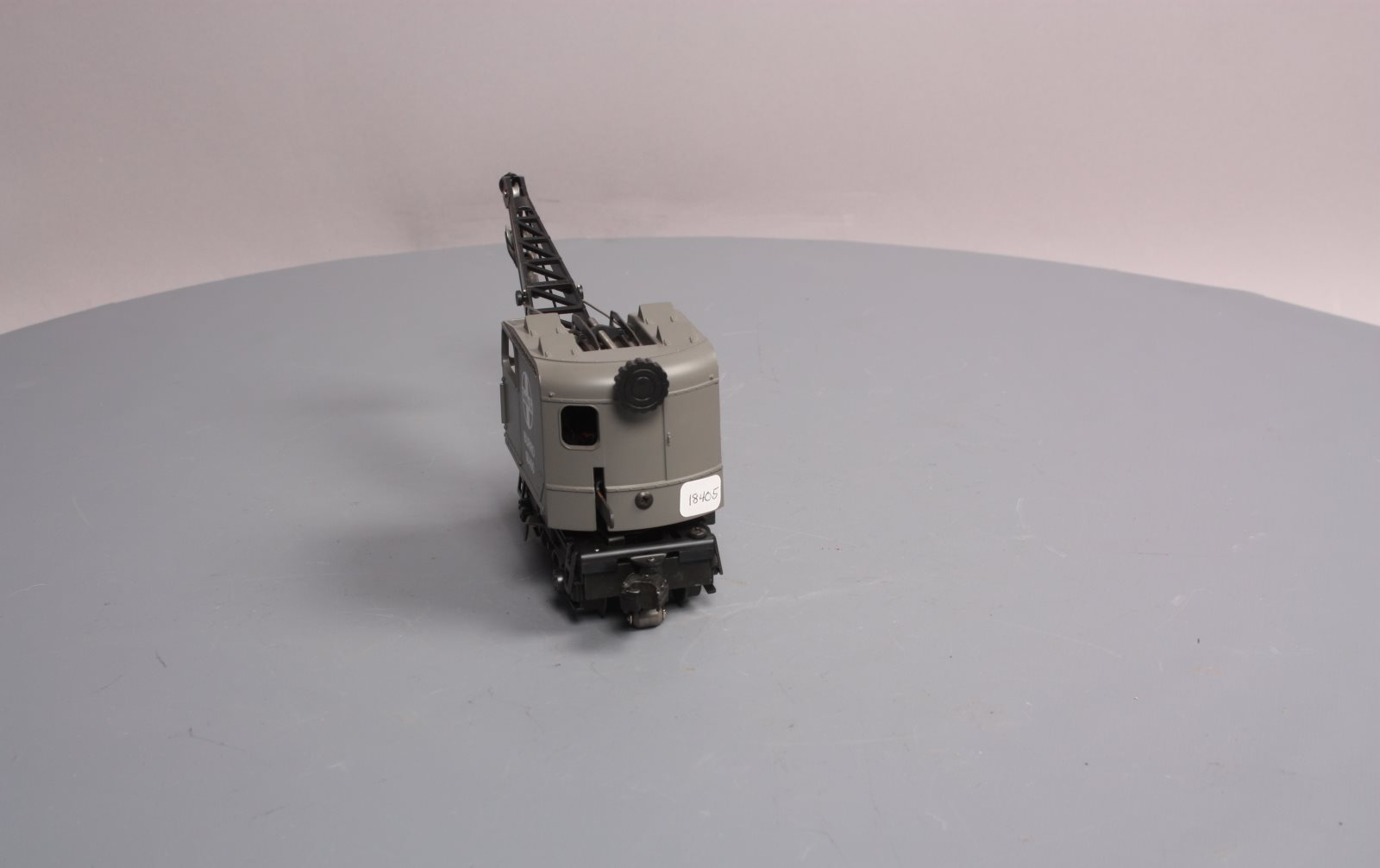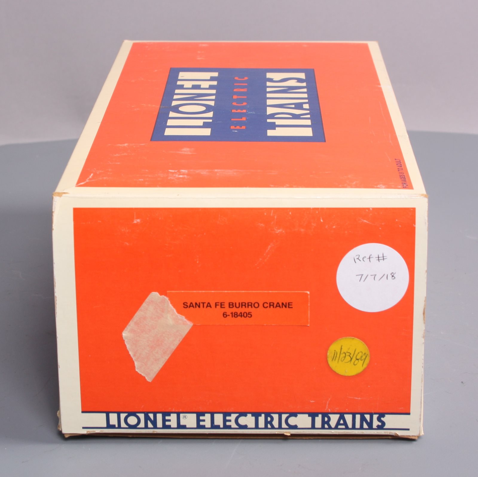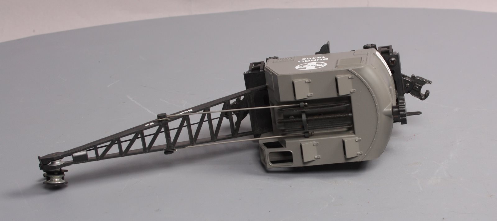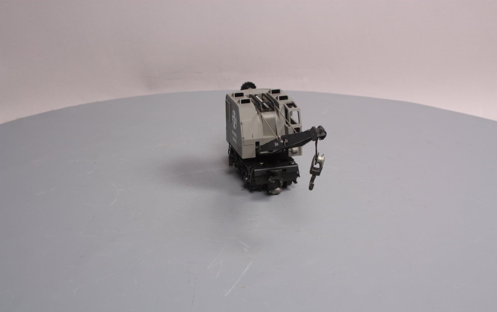 Here is a Lionel 6-18405 O Gauge Santa Fe Operating Burro Crane from 1989. This unique unit is self propelled and when activated by the special track clips the cab swivels and the hook raises and lowers. The boom can also be raised and lowered manually. It features a plastic body, a metal frame, operating knuckle couplers, and metal wheels. Minimum Curve: O-27