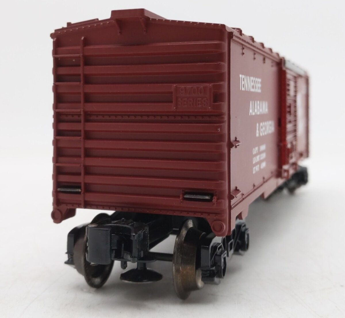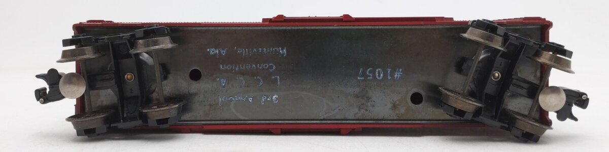 Here is a Lionel 6-9727 O Gauge LCCA Tennessee Alabama & Georgia Boxcar manufactured in 1973. This is the second convention car that LCCA did. It was for the 1973 LCCA convention in Huntsville and is the hardest LCCA car to find. This boxcar features a durable plastic construction with sliding doors, plastic trucks, operating knuckle couplers, metal wheels and axles, and attractive decoration.