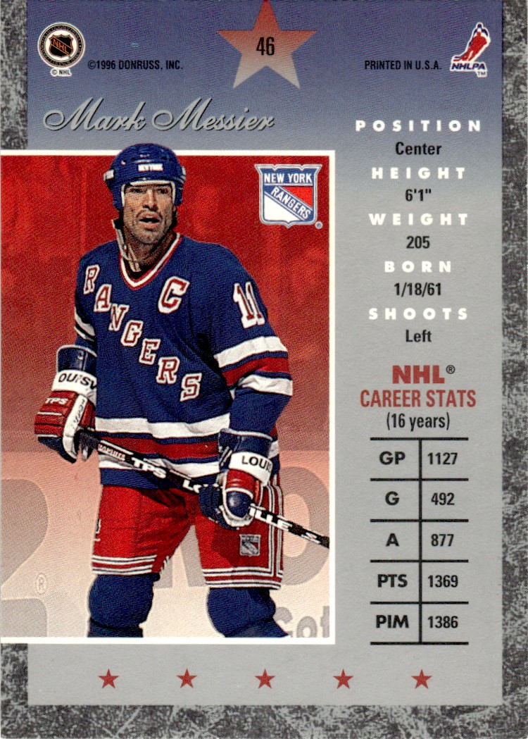 | 1995-96 Donruss Elite Series VTG Hockey HOF Mark Messier New York Rangers #46 |