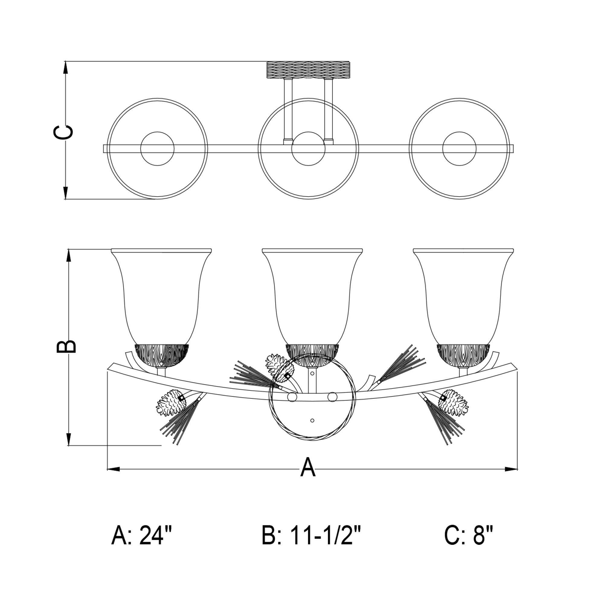 - Requires (3) 60 watt max medium (E26) bulbs