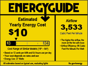 - CFM high: 4738, medium: 3677, low: 2168 (cubic feet per minute)