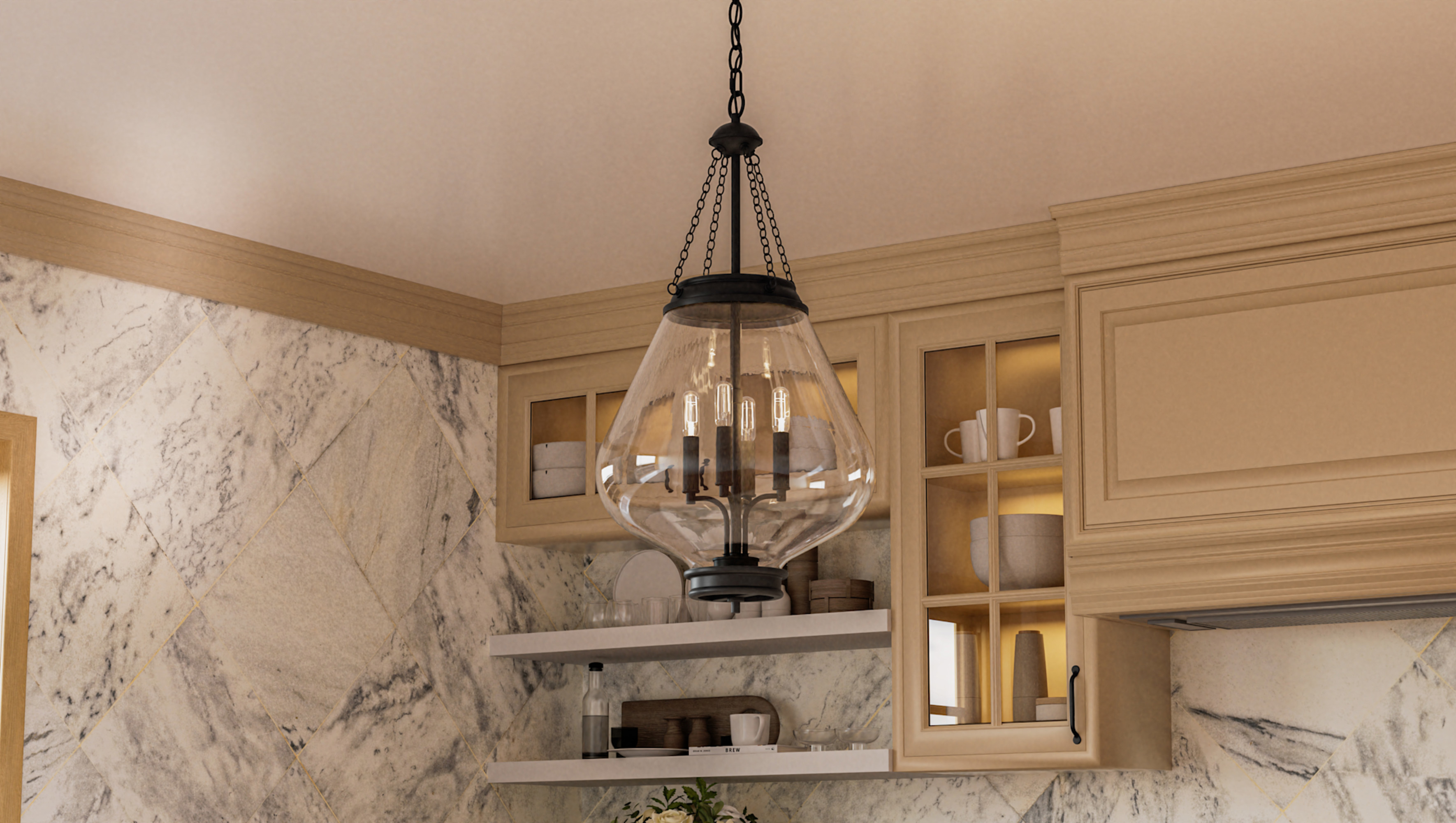 - Requires (4) candelabra (E12) 60 watt bulbs (not included)
