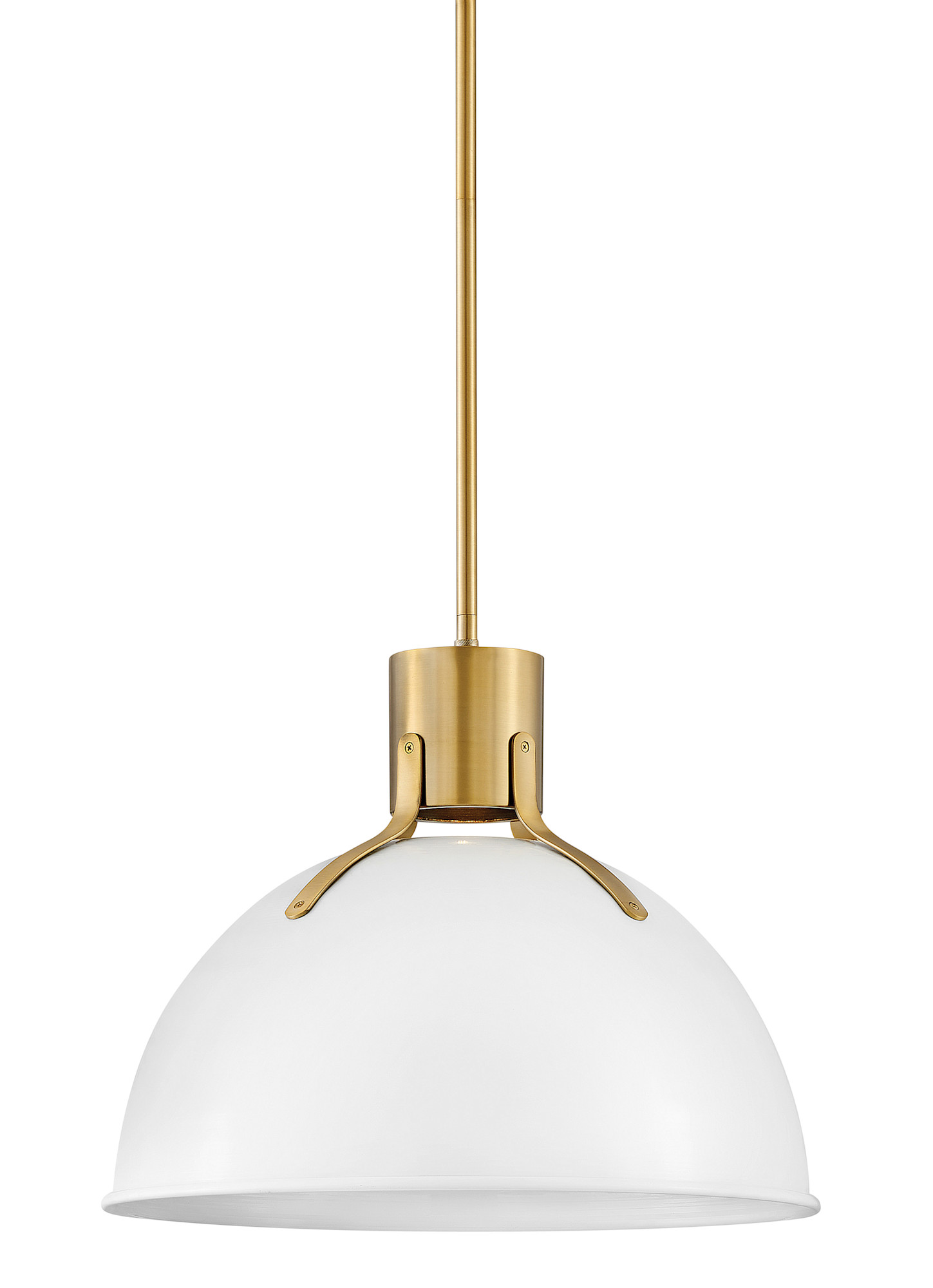 Item DescriptionArgo is brilliantly basic in design but has all the right details to make it shine. The smooth lines of the Satin Black or Polished White dome have a vintage, industrial feel but modern updates, including LED lamping, make Argo contemporary. Heavy Lacquered Brass straps and rivets secure the dome to the cap in this clean and stylish profile.