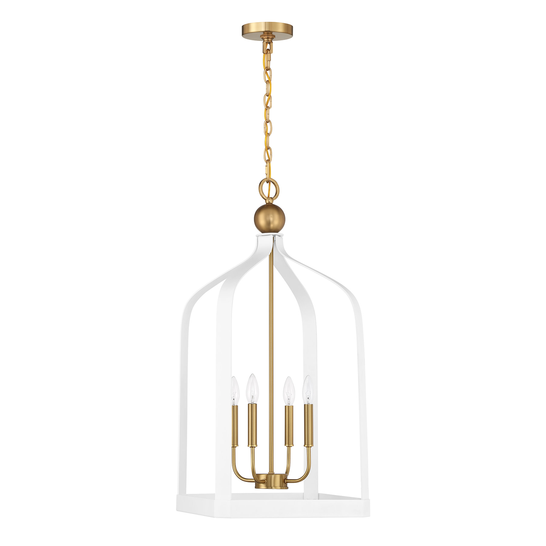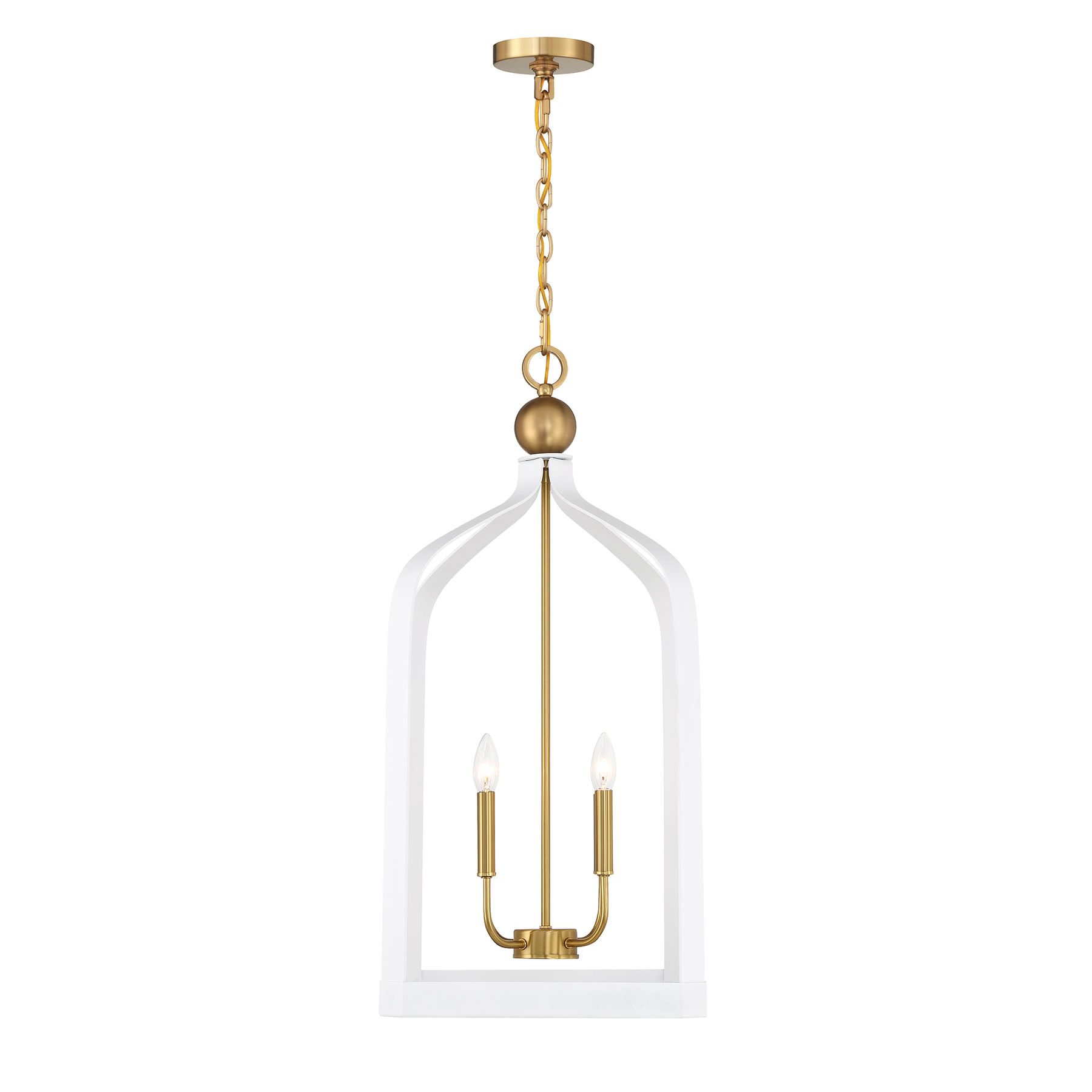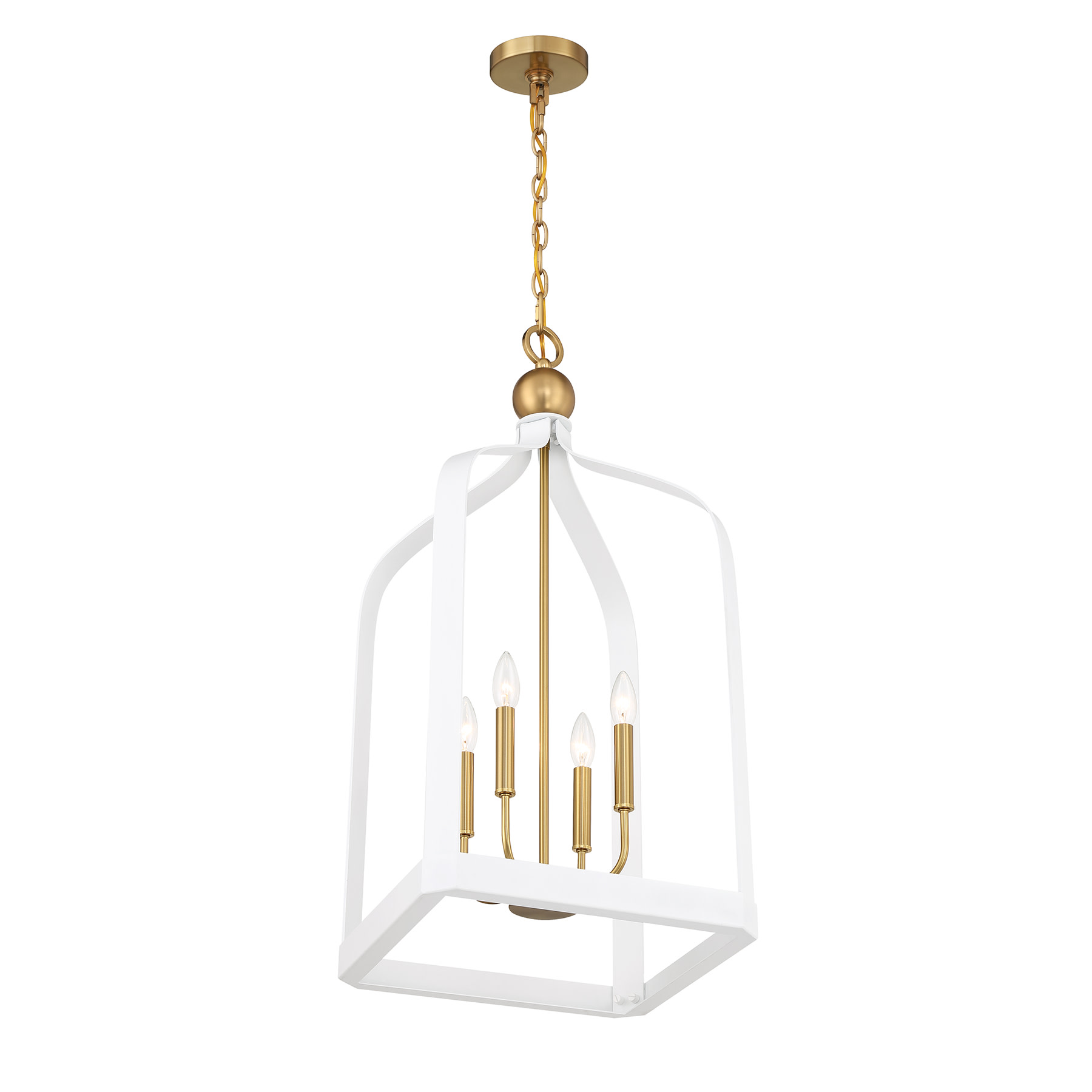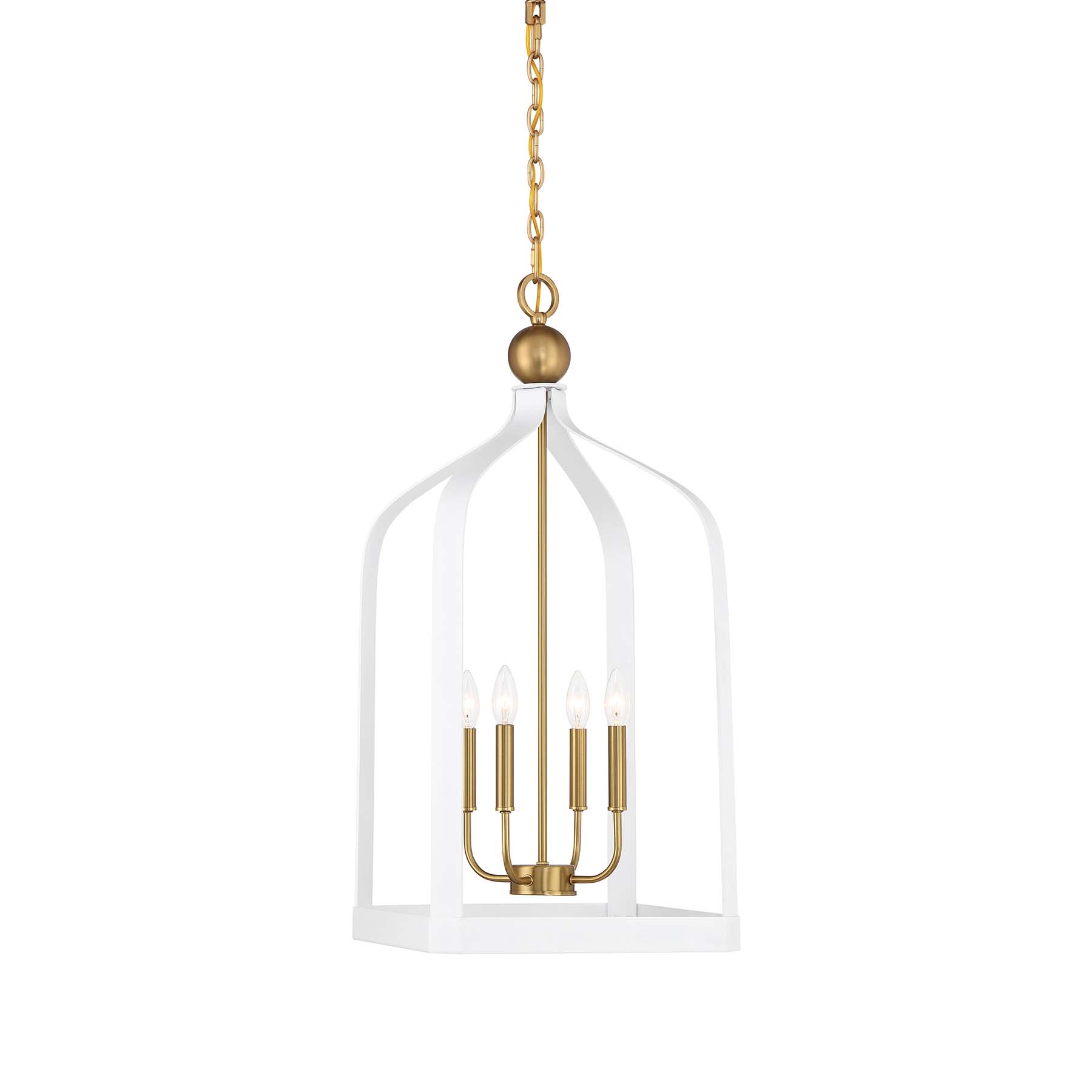 Item DescriptionThe Savoy House Sheffield 4-light pendant offers up a beautiful, elegant and classic look with a lantern-like style, airy openness and a White finish with Warm Brass accents. It is 32" in height and 15" in width. It uses four candelabra size bulbs of up to 60 watts per bulb. Bulbs not included.