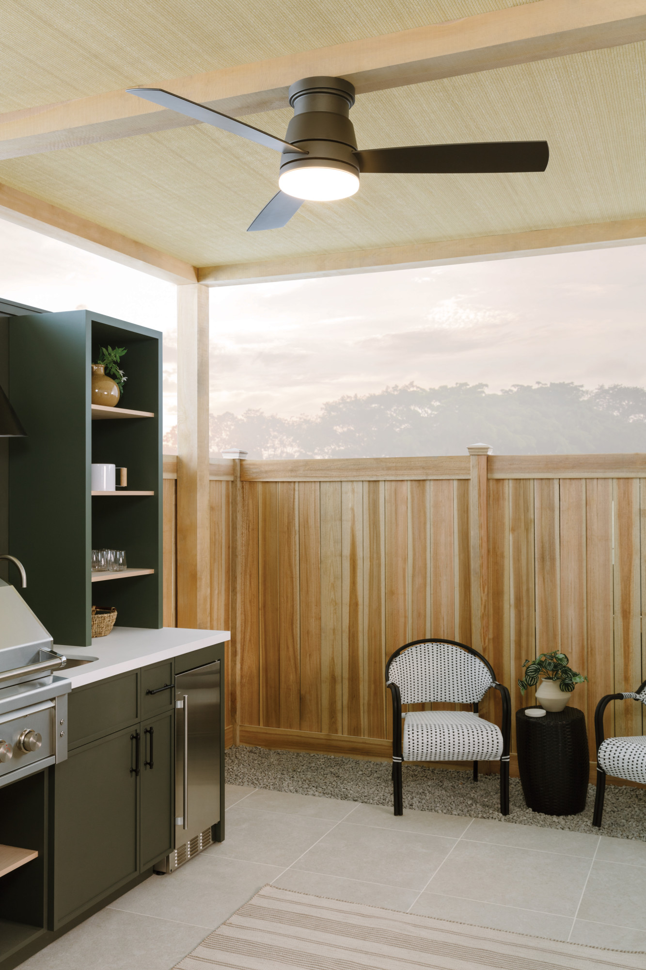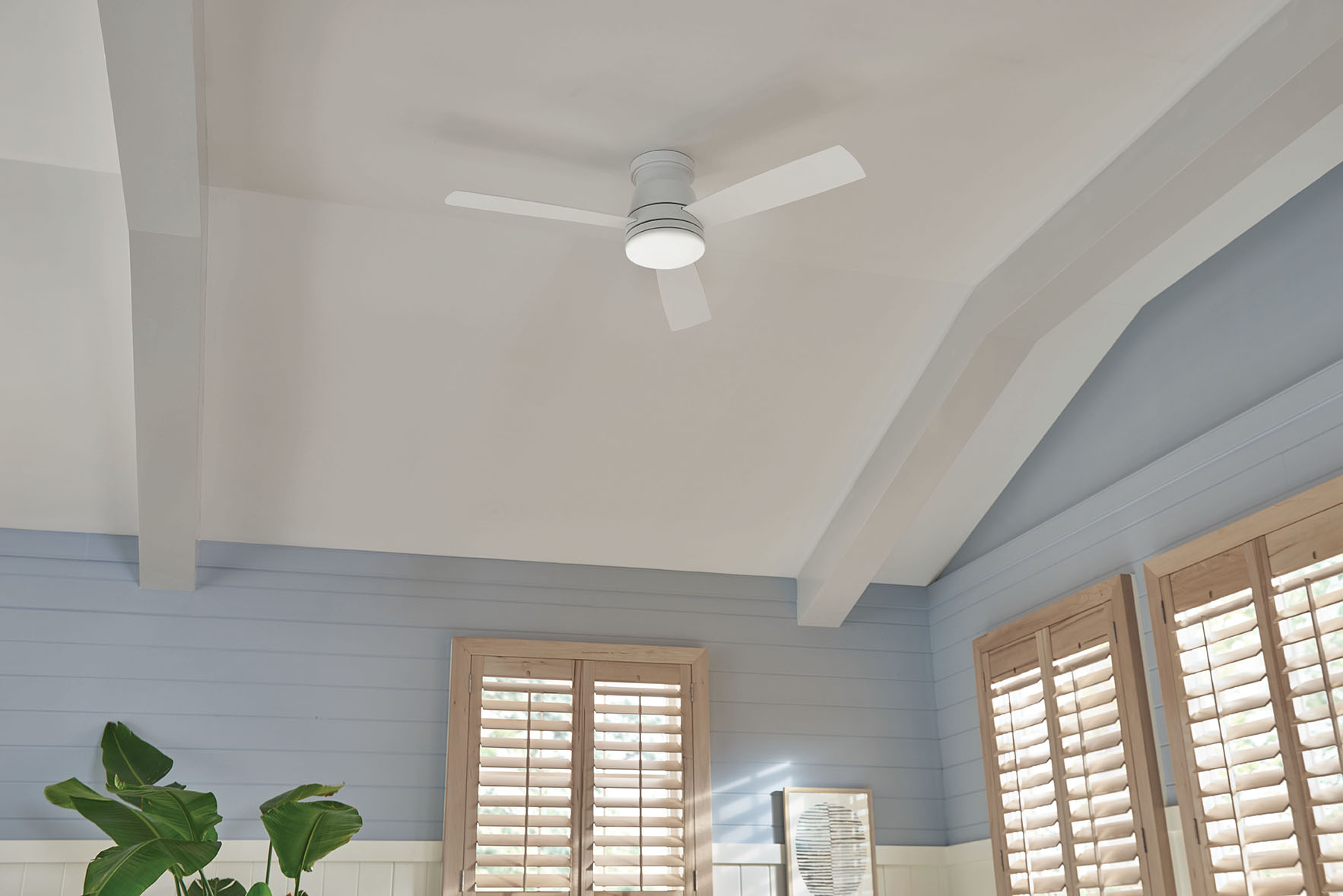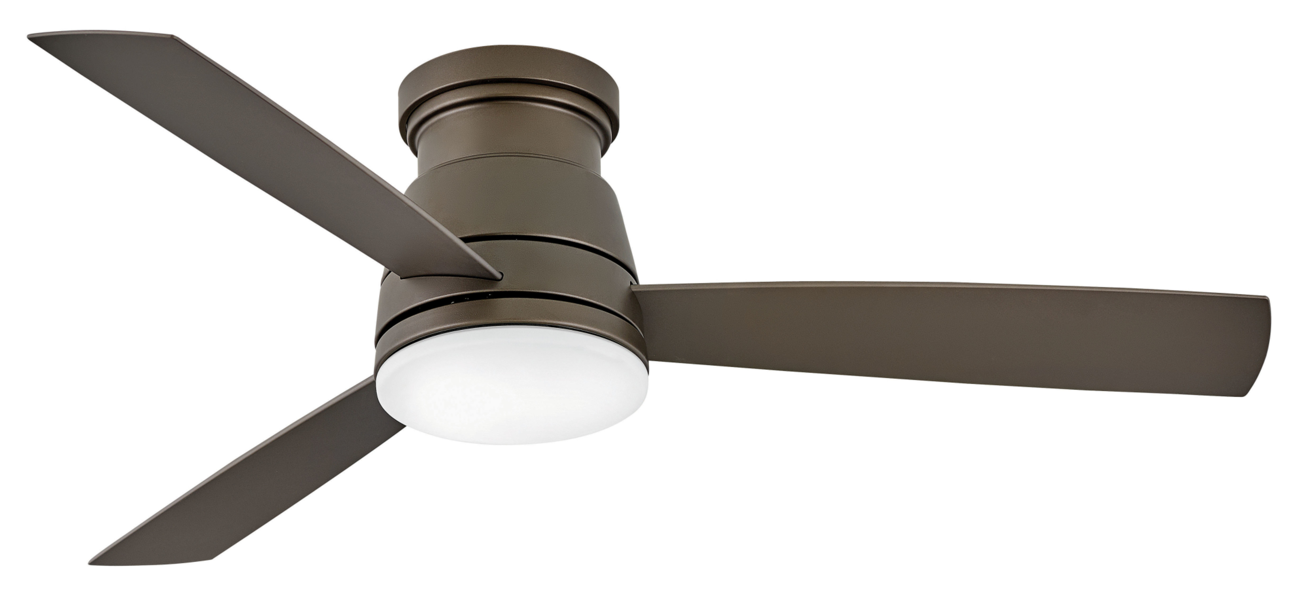 Item DescriptionTrey features a sleek flush mount design that packs a powerful punch. Its transitional style comes equipped with robust blades that seamlessly pair performance and precision. Trey is offered in versatile Brushed Nickel, Metallic Matte Bronze and Matte White finish options, and its integrated LED lighting and DC motor technology deliver excellent energy efficiency. A timeless etched opal light kit completes the look for a refined appearance. Trey is so versatile; it can be used for both indoor and outdoor spaces. Blades are included with every fan.