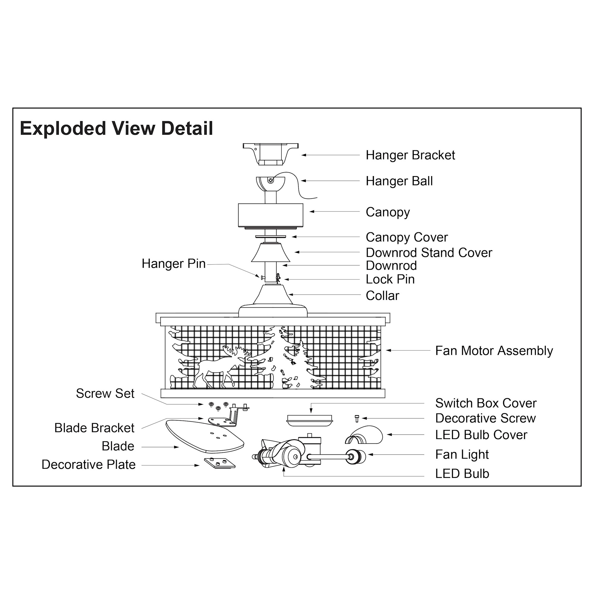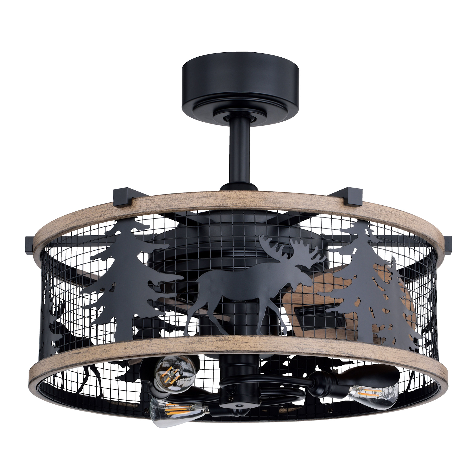 Item DescriptionGet wild with this drum style ceiling fan called Kodiak. Capture your love of nature with pine tree and moose silhouettes. It is a great choice for anywhere you want to bring in an element of nature.