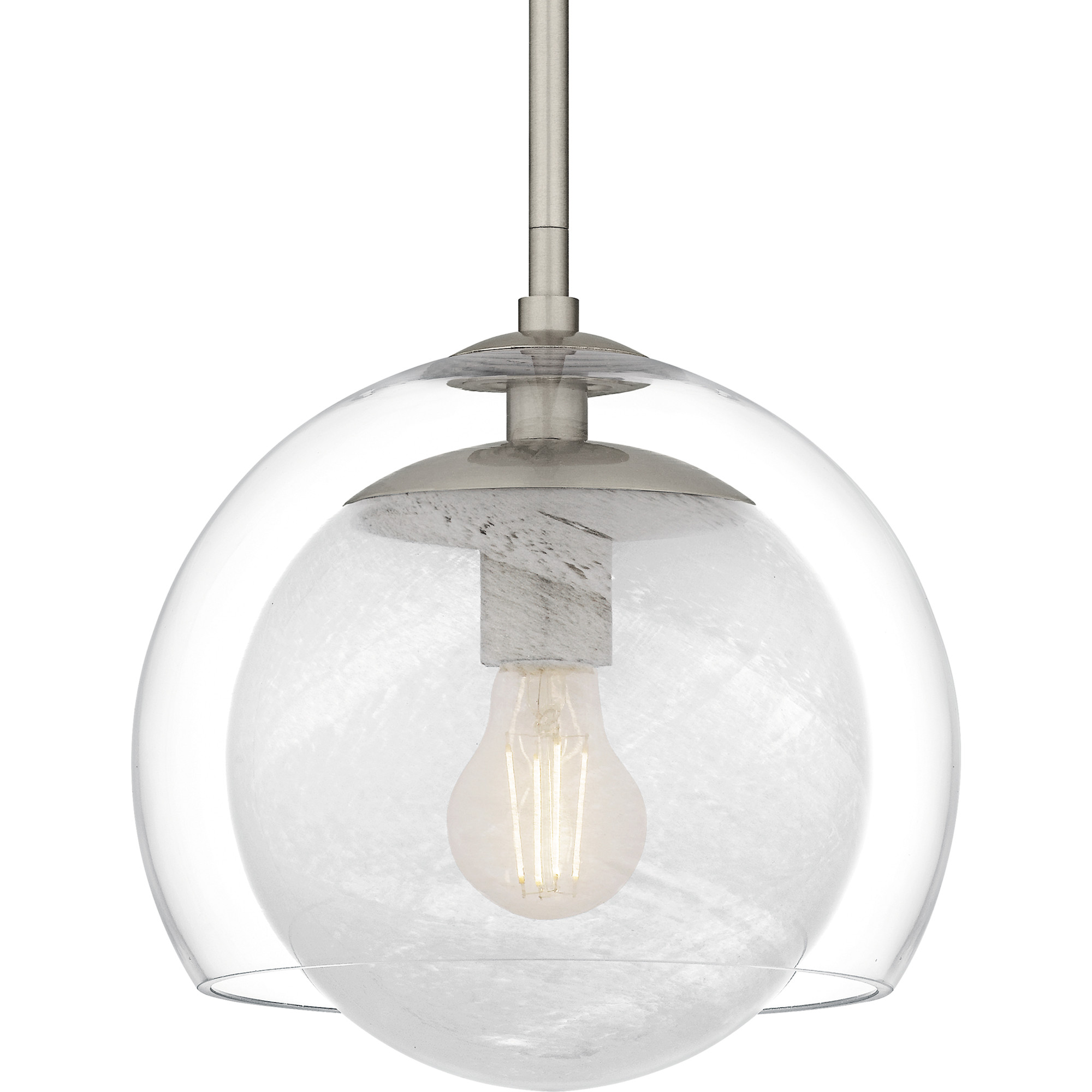 - Includes a clear outer and cloud inner glass shade