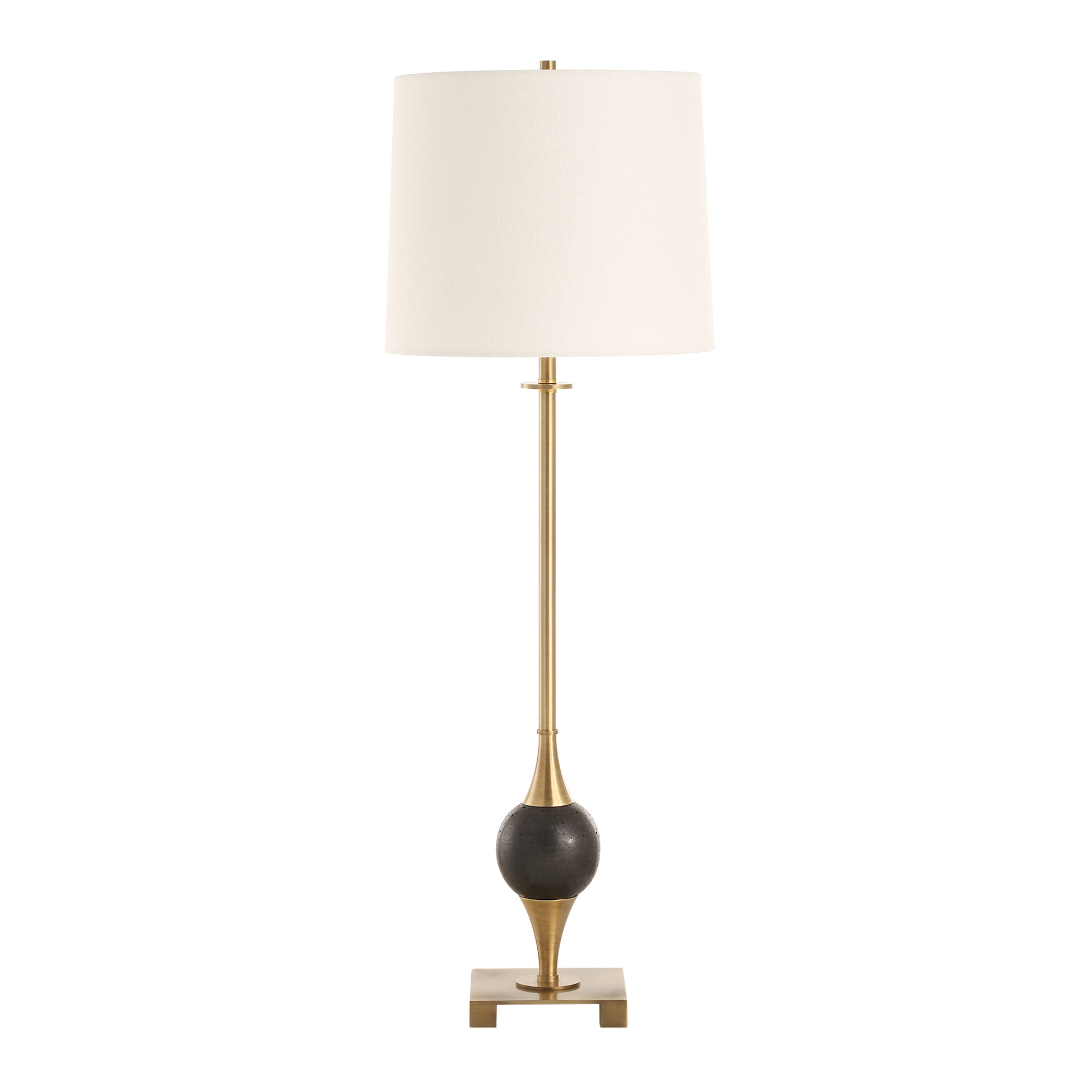 Item DescriptionThe dempsey buffet lamp features a sleek, sophisticated plated base with a complementary foot, elevated by the addition of a striking dolomite marble orb. The slightly tapered round hardback shade is covered in a casual linen fabric.
