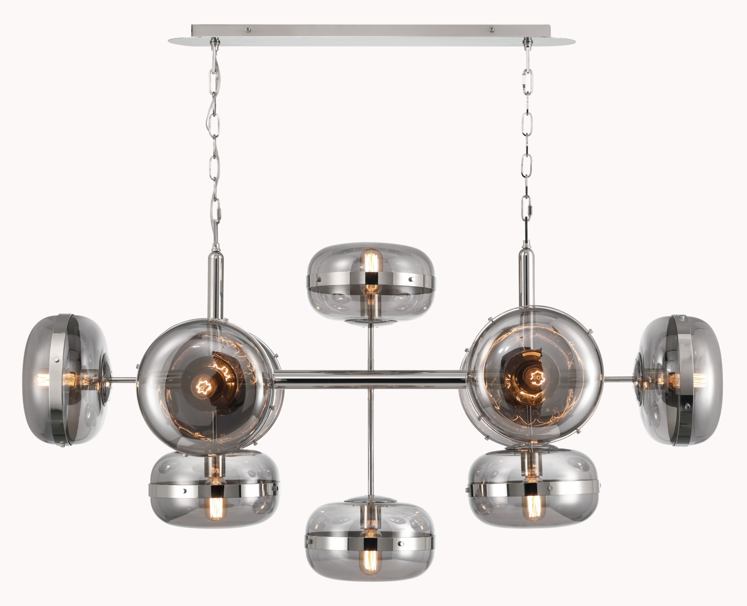 Item DescriptionInspired by Noz Nozawa’s stackable rings, Riviere features a classic silhouette accented by striking details and powered by energy-efficient LED. Organic, pod-shaped heads encase ice onyx discs within a bezel setting reminiscent of the way a gemstone is set into a ring. The distinctive chain suspending the chandelier adds another jewelry-like element to the design. Riviere is available as an 8 or 10-light chandelier and a single-light sconce. Part of our Noz Nozawa collection.