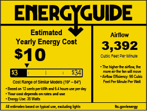 - CFM high: 5104, medium: 3595, low: 2188 (cubic feet per minute)