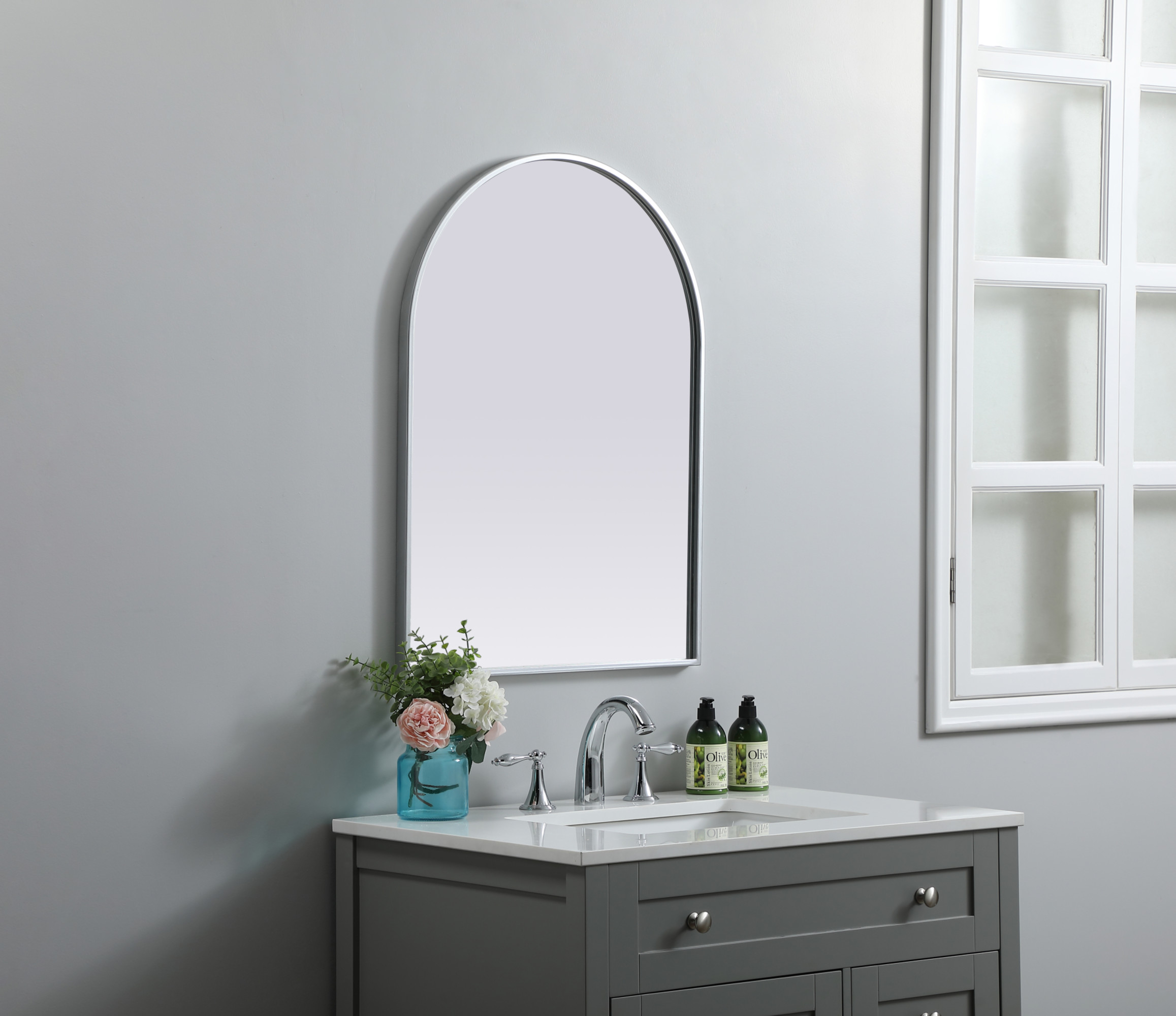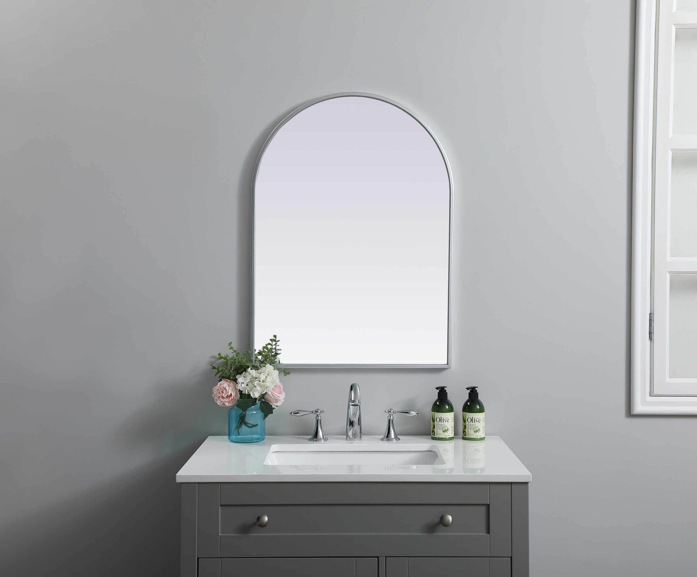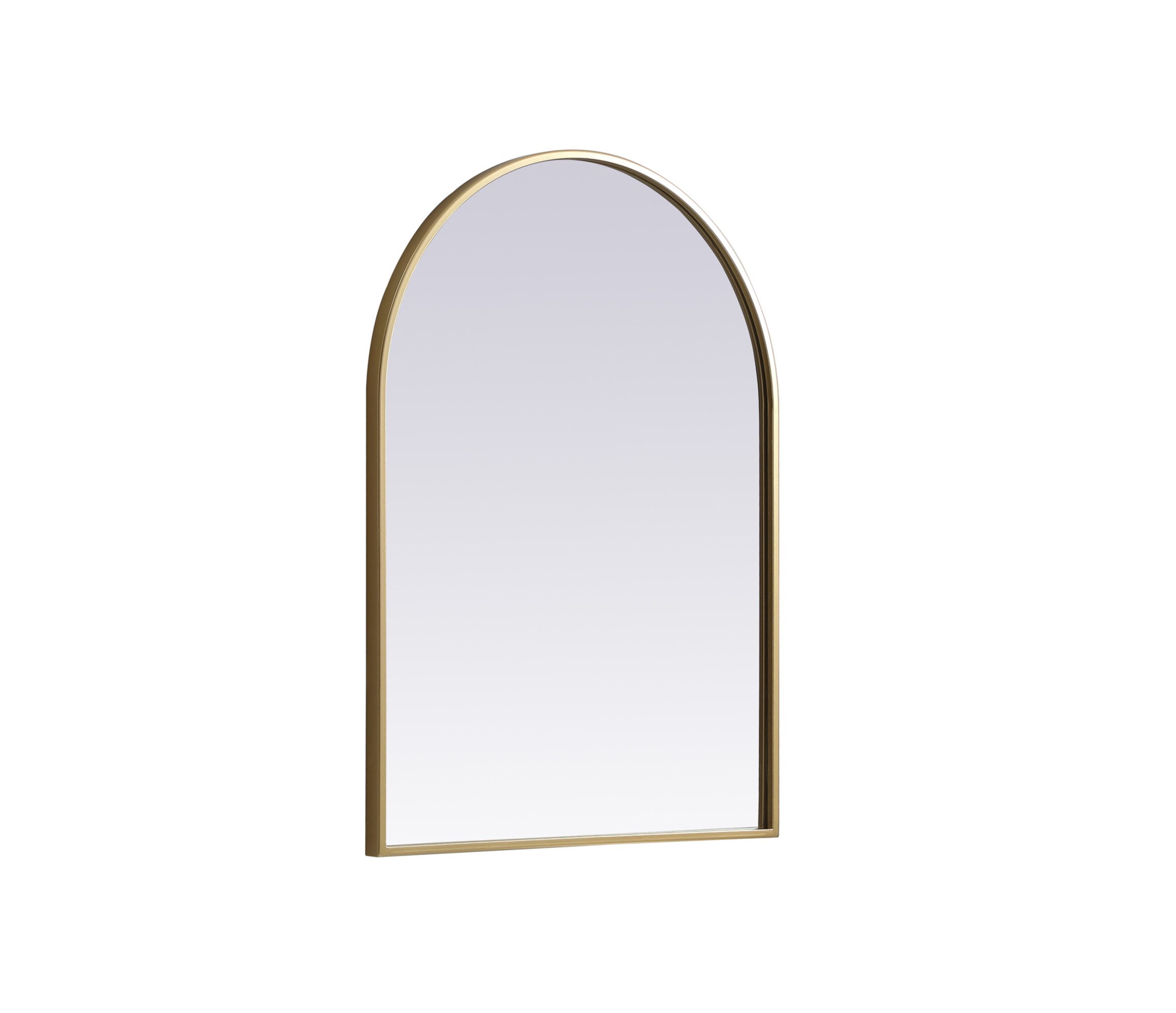 Item DescriptionInstantly open up any space in your home with this minimalist wall-mounted mirror. Crafted of metal, this mirror strikes a round silhouette. Its slender, clean-lined frame sports a classic finish, while the glass mirror within features a flat, for a brilliant reflection, letting the light bounce off to expand your space. Designed in an arch shape. Mount this work of art in any room of your choice for added visual impact.