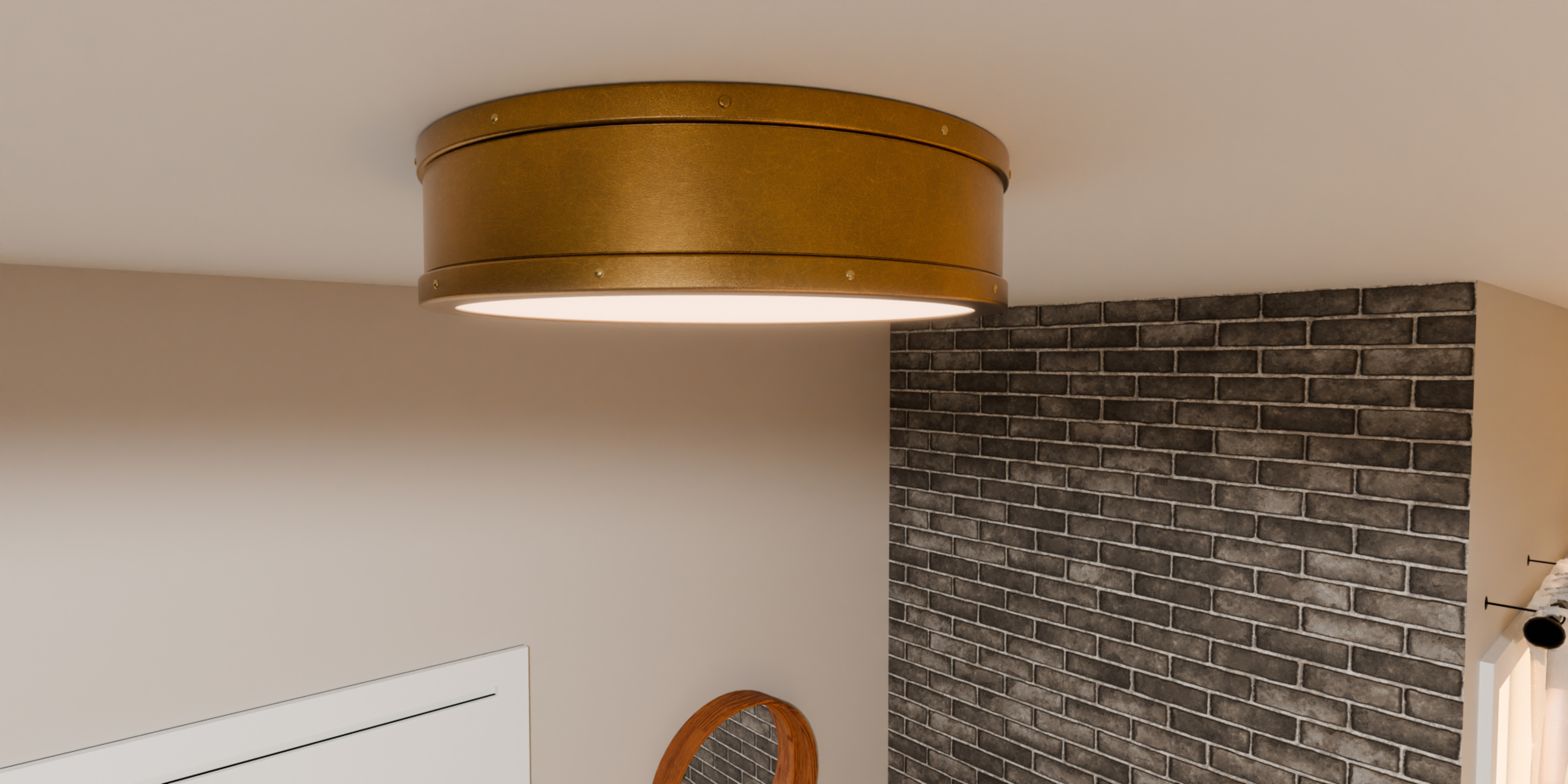 Item DescriptionThe Ahoy flush mount takes a modern approach to industrial design. Available in three beautiful finishes, the classic drum silhouette is accented with small knob details for an extra layer of style. An integrated LED light source is included, emitting the perfect amount of illumination while using less energy. Choose from antique polished nickel, weathered brass, or matte black.