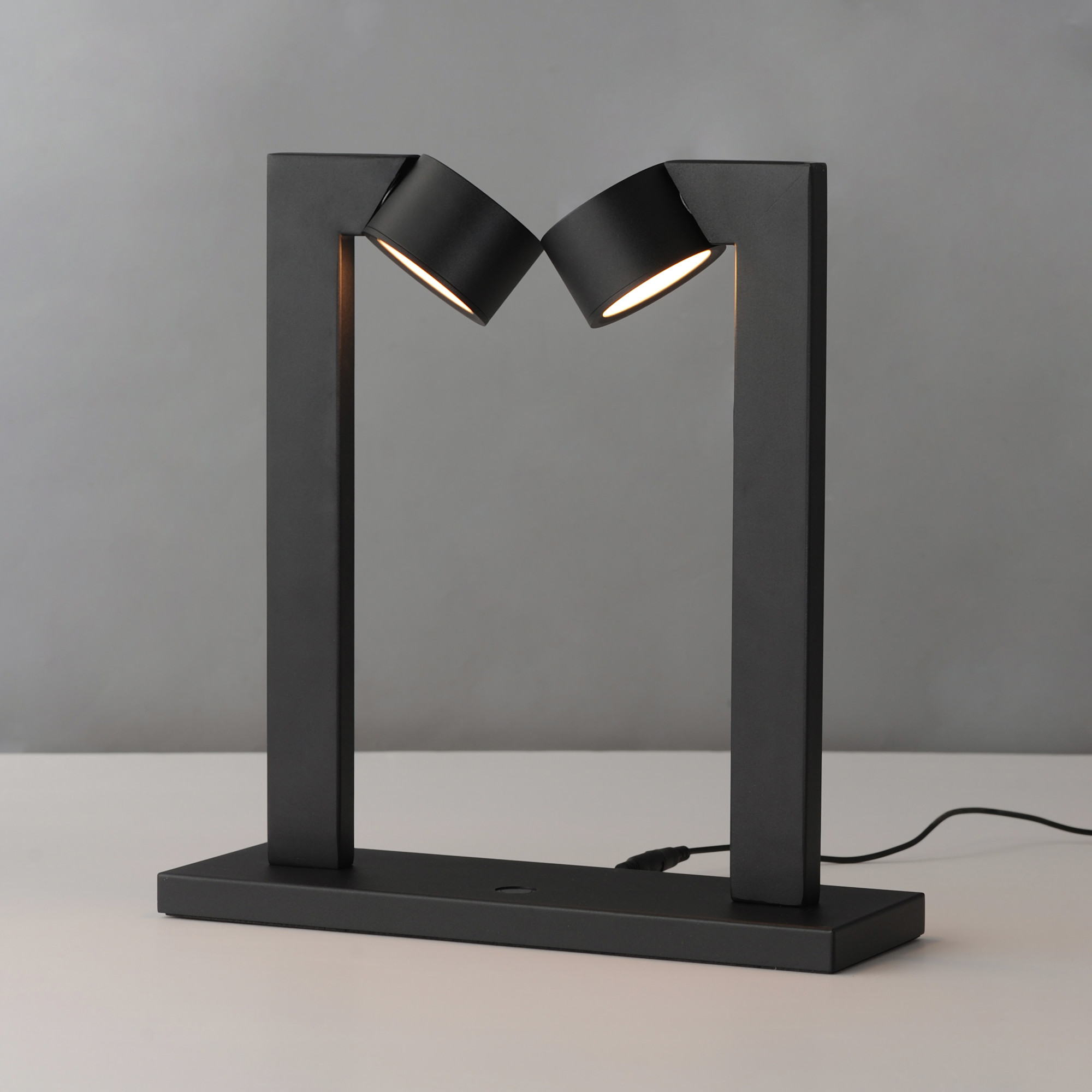Item DescriptionA modern frame crafted with rectilinear tubing supports circular LED light modules. Designed to appear as if they are facing each other in an embrace, the modules create a harmonious and dynamic aesthetic. The two modules, positioned at opposite ends, cast evenly distributed light and seamlessly rotate to direct illumination precisely where it's needed. Two versatile surface-mount fixtures are suitable for wall or ceiling installation, as well as two portable lamp options. The portable designs feature a tabletop lamp and a larger-profile floor lamp, both equipped with an integrated touch switch for easy operation and dimming control.