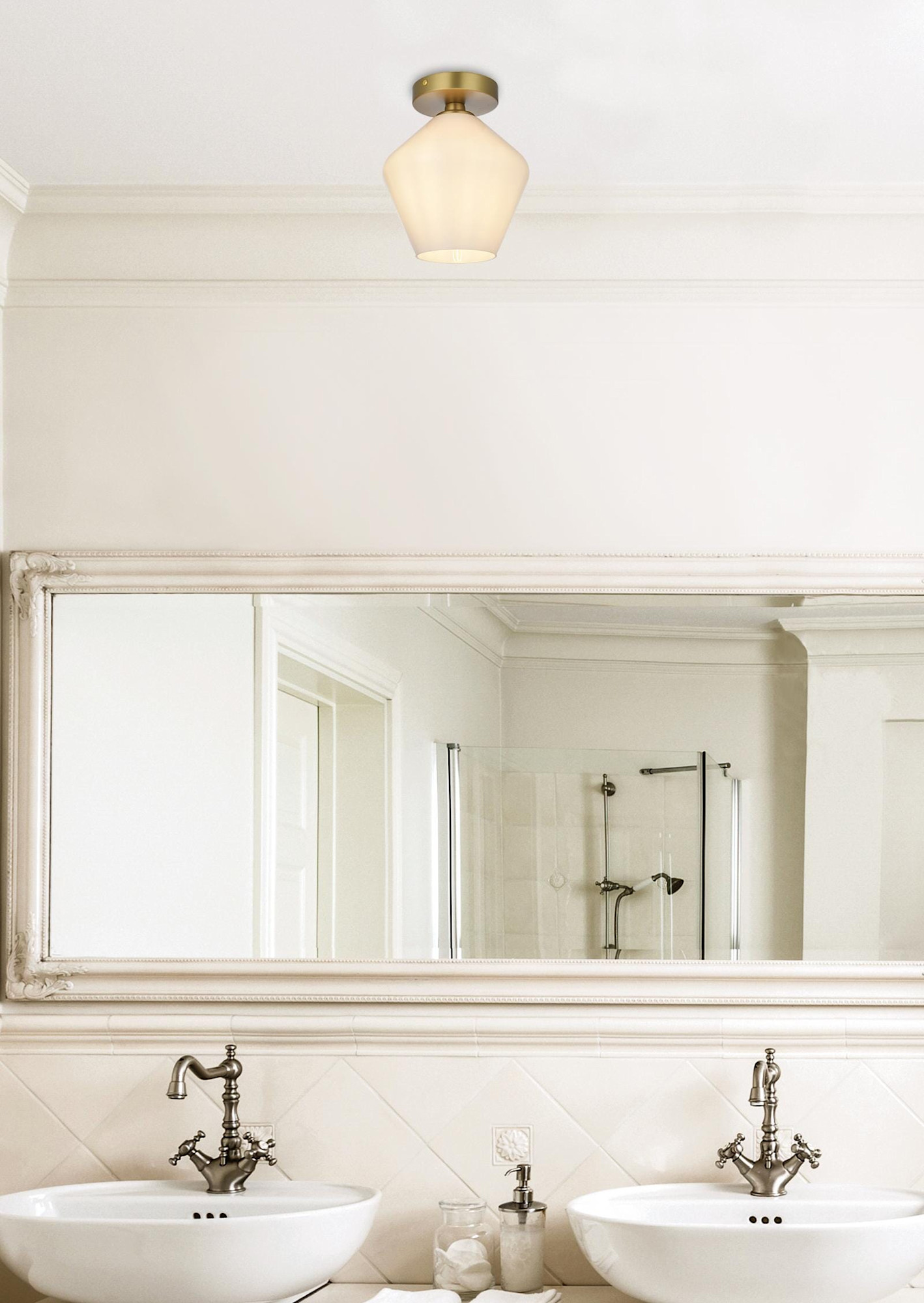 Item DescriptionThe Gene Collection of lights will be sure to have your guests admire your modern sense of style with the beautiful simplicity of its shape and form. This flush mount allows brilliant illumination to shine and radiate, allowing for your room to be center stage, and despite its minimalism, its design is far from boring, with shade. Enhance your bathroom, foyer, or hallways with the Gene Collection flush mount and live in sleek contemporary style (light bulbs not included).