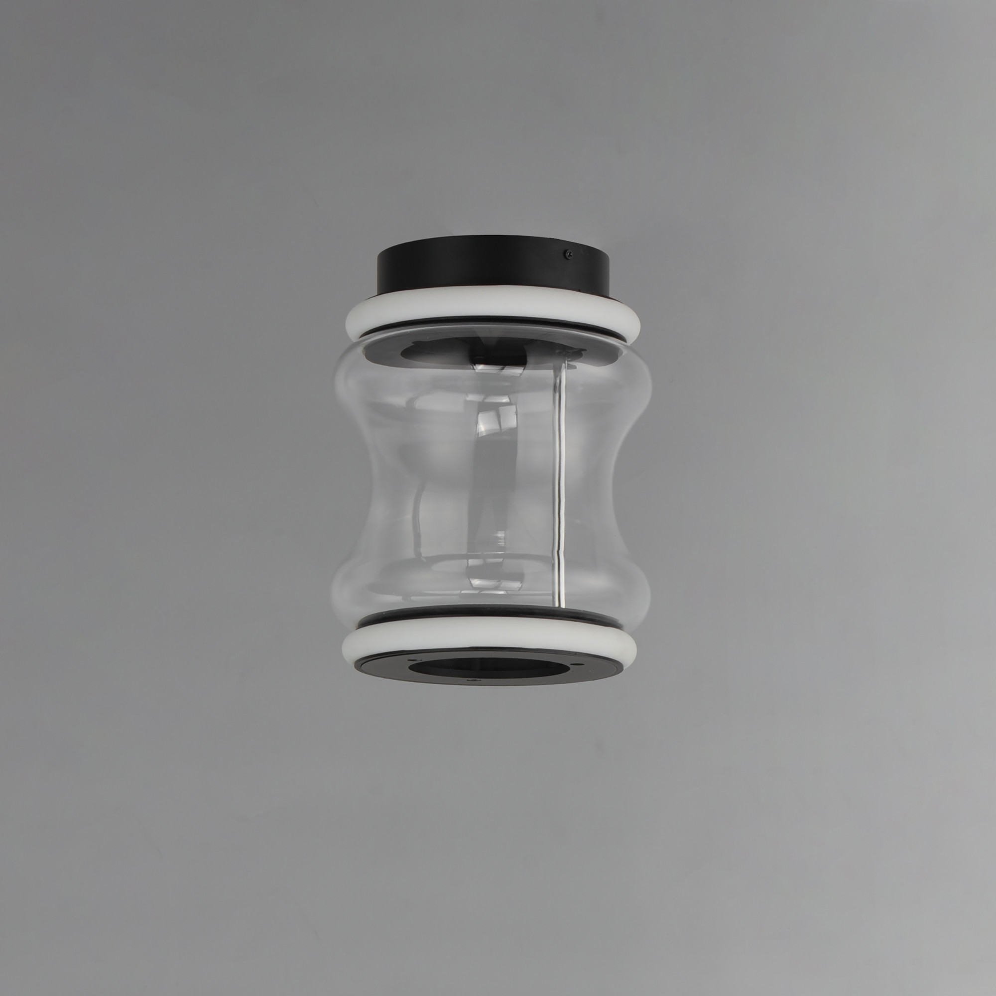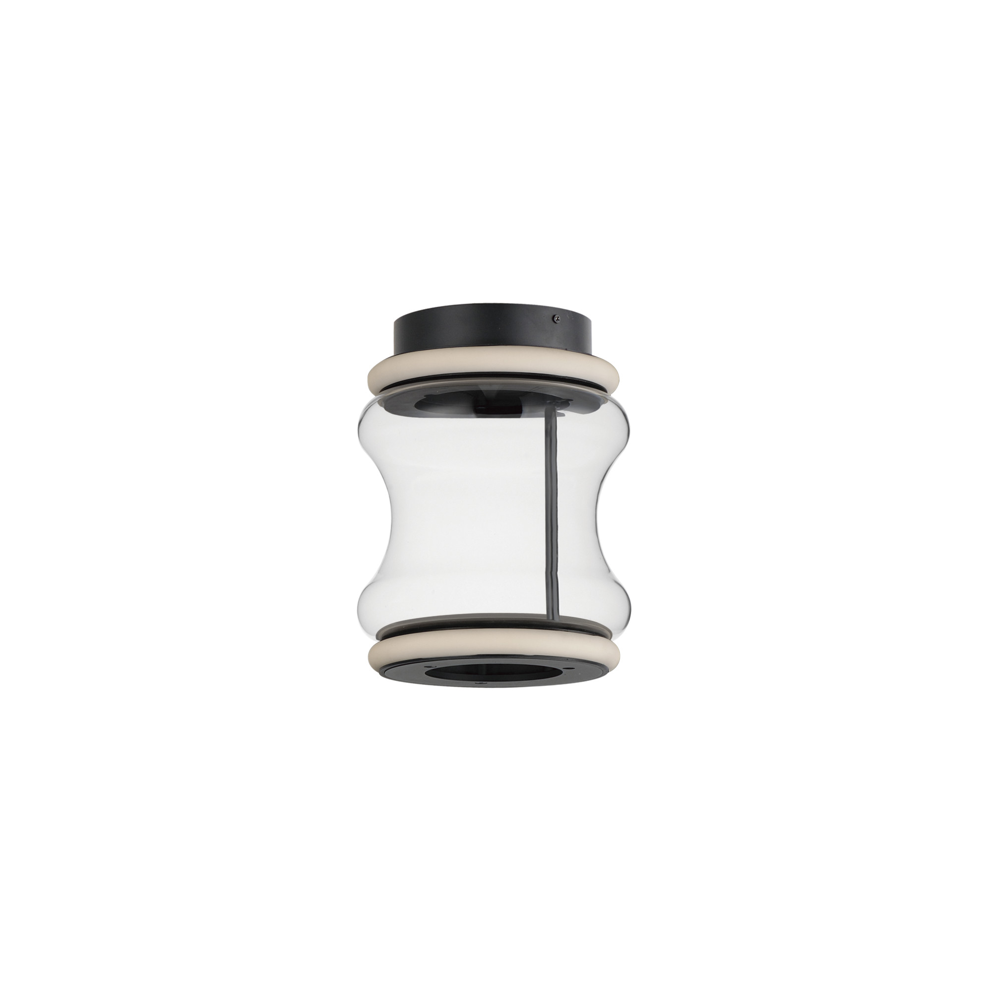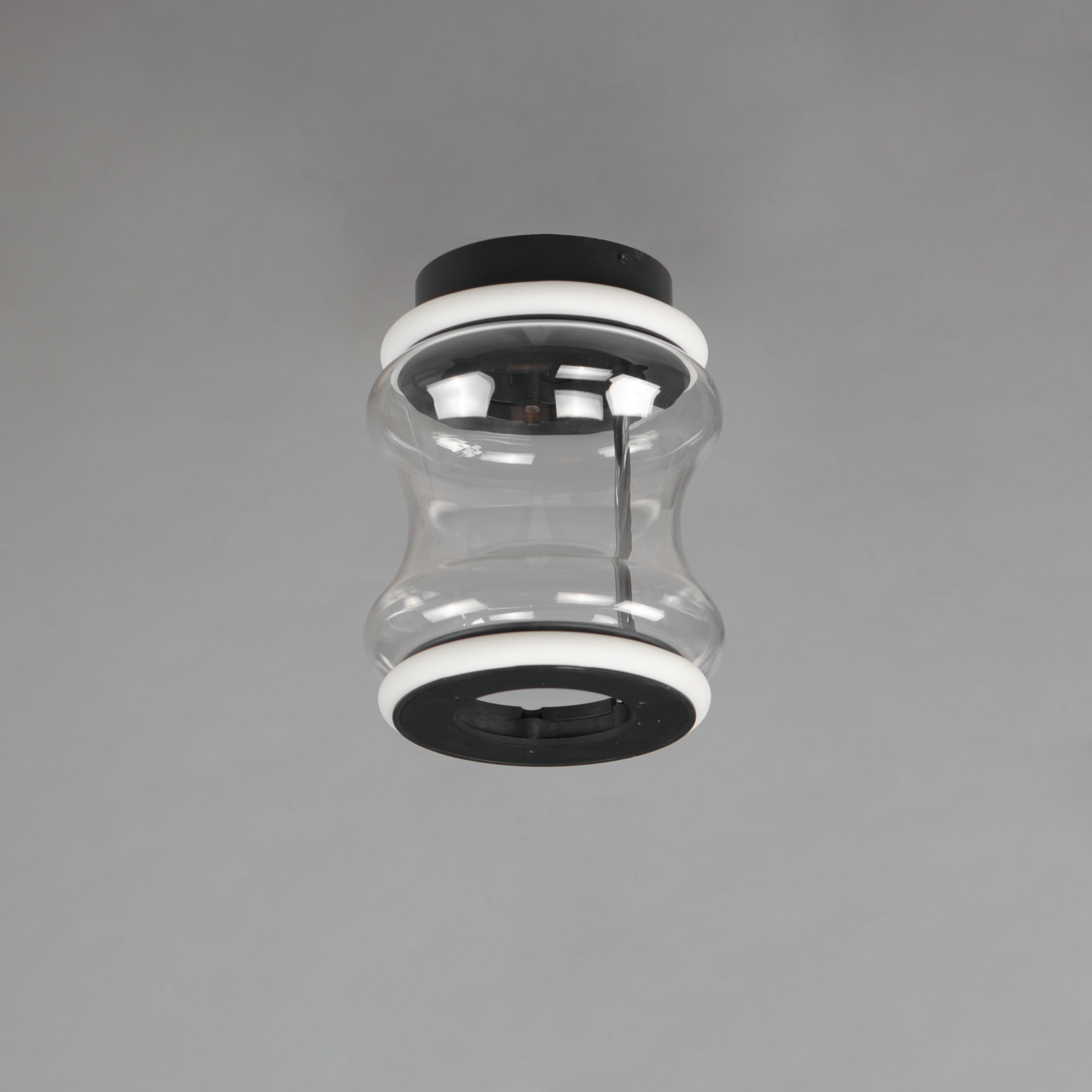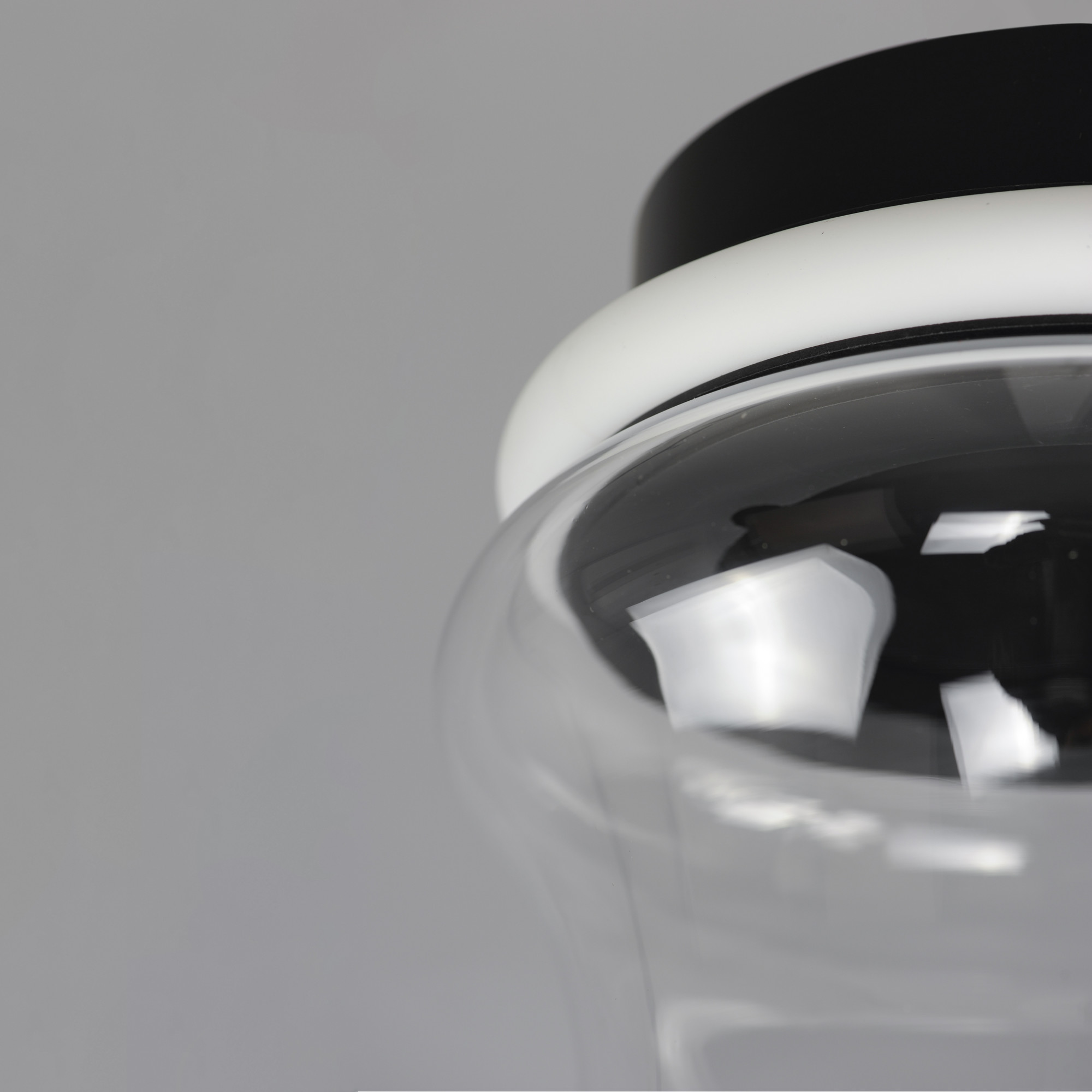 Item DescriptionSegmented by bright LED rings, glass shades of an hourglass shape are combined into various configurations. The hand-blown glass is entirely transparent and varies in size creating an undulating pattern.