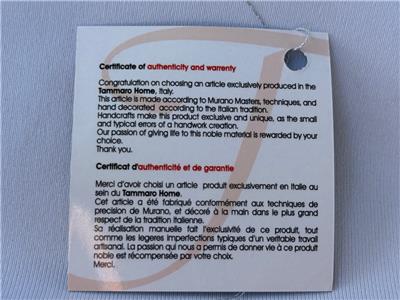 It comes with sticker and tag for confirmation of Italian origin - no box.