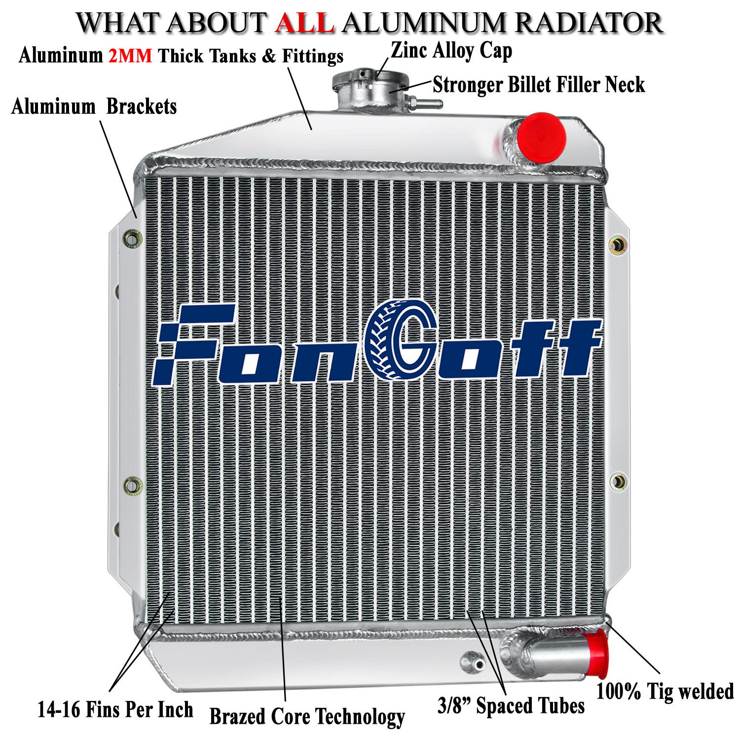 Package Includes: 1 X 3-Row Aluminum Radiator W/ Radiator Cap Vehicle Fitment: FOR Yanmar Diesel 3TNE74 119621-44500 Radiator Size: Row: 3 Row Core Overall Height: 17-6/10" Overall Width: 16-1/8" Core Height: 12-8/10" Core Width: 15-7/20" Inlet Neck: 1-1/10" Outlet Neck: 1-1/10" Please Check The Dimensions Above Carefully Before You Buy! Description: This aluminum radiator is designed to provide maximum cooling efficiency to prevent premature engine failure. Its light-weight, and high-heat transferring aluminum features a tube and fin design that, dramatically increases surface area that enables the heat to dissipate more efficiently. This Aluminum Radiator is at least 40% more efficient than stock ones. Most importantly, it has a much higher capacity for coolant than stock ones, which means that your cooling system will be more efficient and will be more resistant to temperature surges in racing applications.