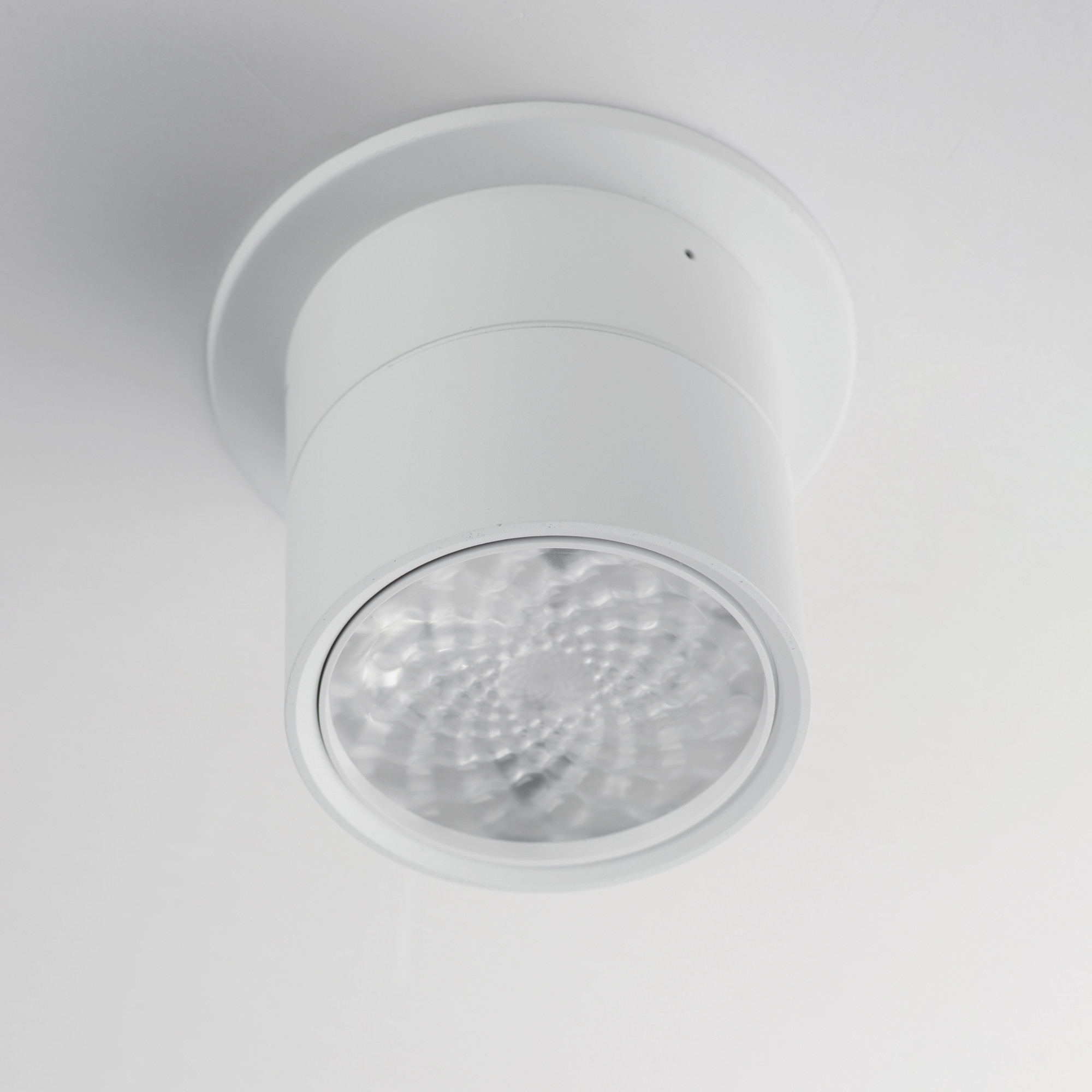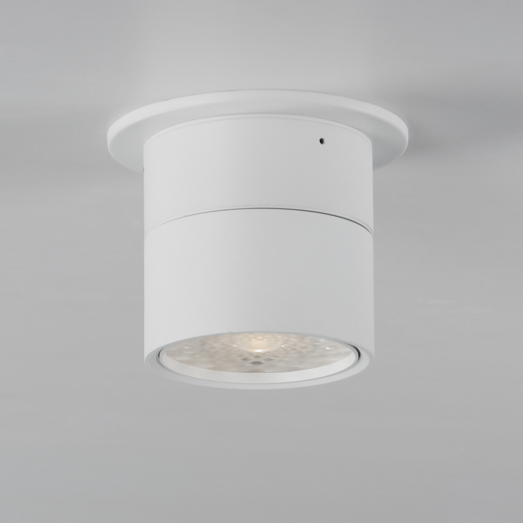 Item DescriptionInconspicuously recessed within its cylindrical house, an extending arm transforms this surface mounted light fixture into an adjustable spotlight. Simply unthread the top half along the seam to extend the frame length and swing the fixture into position. Twist the lens on the face of this fixture to adjust its beam angle spread.