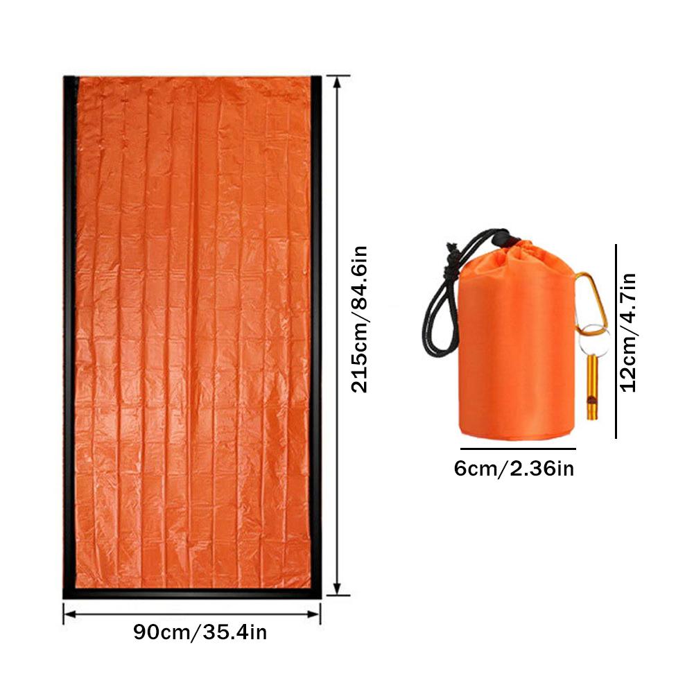 Ultra-light and easy to carry: This survival sleeping bag can be packed into a compact 4.7 "x 2.36" pouch, making it easy to carry on any outdoor adventure. It's small enough to fit in your pocket or first-aid kit, but can expand to a size of 84.6 inches x 35.4 inches to cover your entire body.