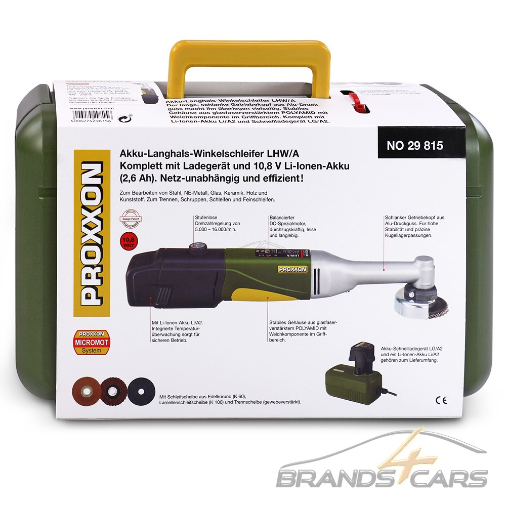 - Für Akku-Langhals-Winkelschleifer (PROXXON 29815) geeignet