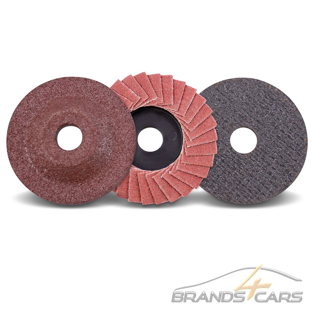 - Komplett mit Schleifscheibe aus Edelkorund (K 60), Lamellenschleifscheibe (K 100) und Trennscheibe (gewebeverstärkt)