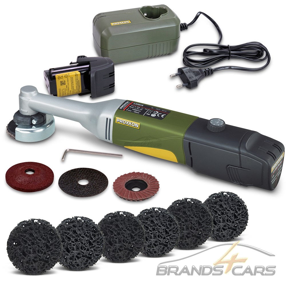 PROXXON Akku-Langhals-Winkelschleifer - Ø 50 mm + 6x Reinigungsscheibe